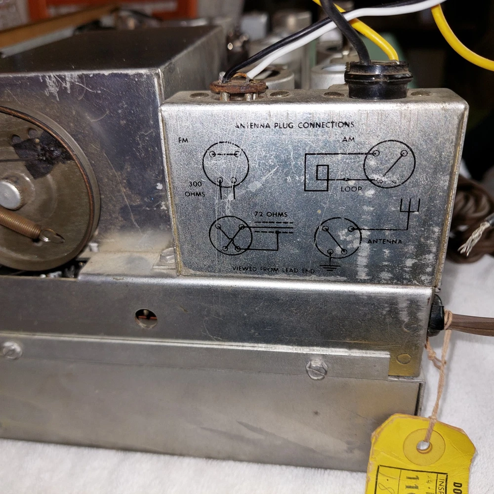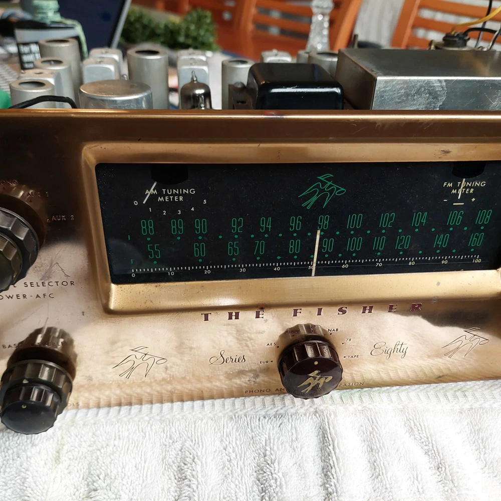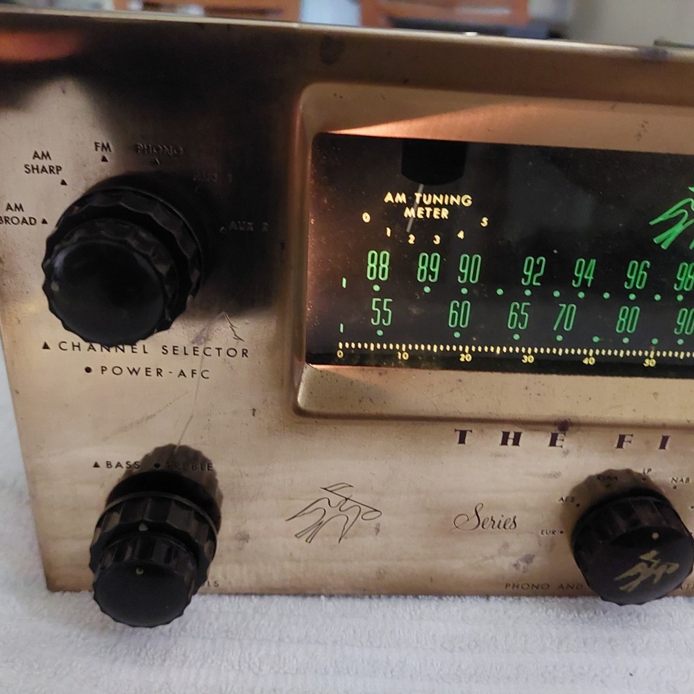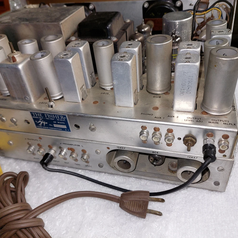 LOCAL PICKUP AVAILABLE Cutler Bay, Florida 33190 This unit is Cross-Listed.. This unit just back 03/06/2025 from a complete servicing/restoration by a Radio/HiFi/Ham Restoration Professional with 50 year Radio restoration experience Restoration work done to Factory Specifications. ONE(1) 1956 FISHER MODEL Lab Series 80-T High Quality MONO PREAMPLIFIER with AM/FM Radio(Mono) .Electronic CONDITION: WORKING AS DESIGNED Detailed Restoration included : REPLACING ALL OUT OF TOLERANCE OLD RESISTORS AND ALL PIO CAPS to NOS re-tested Polyester/Mylar tone caps at lower tolerances in both PreAmp and AM/FM Radio chassis. Re-Checked and adjusted AM/FM Alignment. Cleaned &Checked all point-to point solder connections, Cleaned Sockets, Pots, Switch & Contacts with CRC QD electrical contact cleaner then Deoxit5 electrical lubricant. Replace pilot light, Re-Tested all 16 tubes and replace one 6AU6 with nos USA vintage tube. All 16 tubes are USA vintage tubes a couple original 'The Fisher' tubes by USA manufacturers( Tung-Sol, RCA, GE ect). The Mono Pre-Amp section has 3 tubes (1xRCA Black Plate 1950s 12AX7, 1xGE 1950s 12AX7, 1x Original Fisher 6C4 ), The 6X4 rectifier is the original 'The Fisher' tube as are a couple other Radio tubes. Cosmetics are Fair to Good considering this unit is 70years old.: The glass is nice and Clear with complete silk screening visible. Both AM & FM Tuning Meters work as designed. Also the AM & FM Antenna 4pin connections on top right side support a Loop ,72 Ohm and a 300 Ohm Antenna with wire leads are provided for easy connection. All 5 Original Fisher knobs ('SongBirds') are in very good cosmetic and working condition and clean. We spent a couple hours cleaning the faceplate (had lots of aged tarnish on it) with Flitz polymer polish and went through 5 large micro-fiber cloths by hand rubbing tarnish/oxidation off the face. However it will cleanup a little better with another couple of hours of detailing with Flitz polish if you want to spend the time to do so . There is no rust but some pitting on this faceplace. Also it does have surface scratches in the face plate. See all the pics close up for cosmetics. Essentially we are selling this unit working as designed electronically restored and you make the call as to wither the cosmetics are good enough for you. The 3 tube preamp is connected to the power supply and 13 tube tuner internally via an umbilical cord.. From the service manual is this info: TUBE COMPLEMENT: A total of 16 including 2-6BQ7A, 1-6CB6, 1-6BE6, 1-6AU6, 1-6AL5, 2-12AX7, 2-6BJ6, 3-6C4, 2-6U8 and 1-6X4. PHYSICAL DATA: Overall dimensions: 12 3/4” wide, 8 3/4” deep, 6” high. Allow an additional 1” depth for control knobs. Shipping weight: approximately 21 pounds. Total of eight controls: Bass Control and Treble Controls - bass and treble controls are of the variable crossover type and afford up to 15 db boost and cut at 50 and 10,000 cycles, respectively. EQ Selector (7 positions: EUR, AES, RIAA, LP, NAB, 78, and TAPE) Volume Control Adjustable Loudness Control ; can be turned on or off from front panel. AFC Control and Power Switch Channel Selector (6 positions: AM Broad, AM Sharp, FM, Phono, Aux 1, Aux 2) Station Selector WE TESTED THIS Fisher LAb Series 80-T MONO AM/FM Radio & PREAMP WITH OUR RESTORED FISHER 1959 X-1000 (x-101) MONO INPUT. Testing AM Broadcast & AM Sharp1 CHANNEL and FM on Channel 2 and OUR PHILIPS 312 TURNTABLE WITH MM CART into the Phono 1 Channel(Mono) and with a CD Player(Stereo to Mono rca jack inserted) into AUX1 & 2 input channels, The audio sound is very clean and clear, We will Pull all Tubes and Tube Shields and the Front 5 Knobs and pack them in a separate box and place that box into the box with the well packaged Fisher 80-T. Please read out feedback, We have many years safe exp/ shipping fragile Vintage Electronics, Tubes & Speakers. PACKING & SHIPPING DETAILS Shipping will be calculated USPS ground for a very well packed and extra insulated package. Full value insurance is included. Being offered at a fair "Complete Restoration " Buy it Now Price. WE HAVE MANY YEARS OF EXPERIENCE SHIPPING FRAGILE ELECTRONICS VACUUM TUBES AND SPEAKERS. net dims approx: 13 "W X 9"D X 6"H NET WEIGHT: 14lbs shipped box dims: 16"W x12" X 10"H shipped box weight: 22 lbs WE will ship this unit Boxed Very Well Wrapped for safe shipping, THANK YOU FOR LOOKING! .