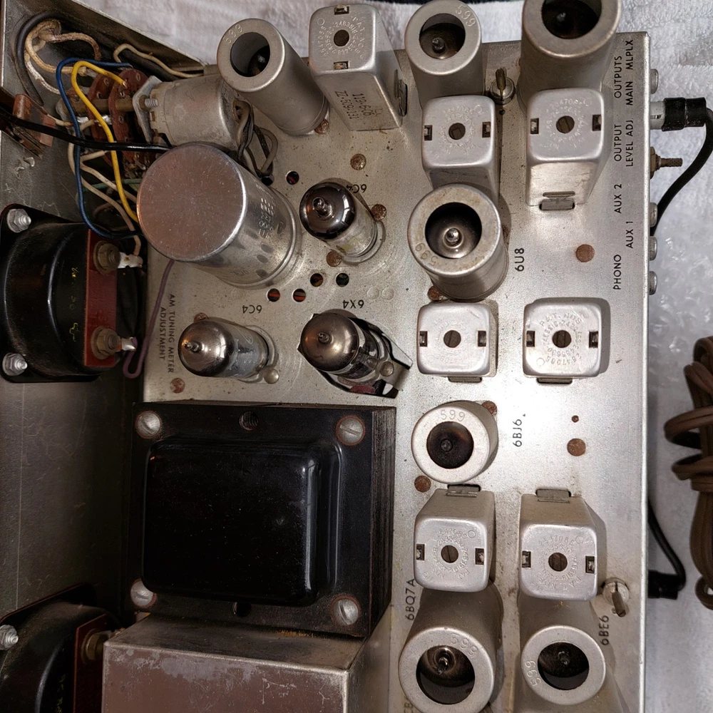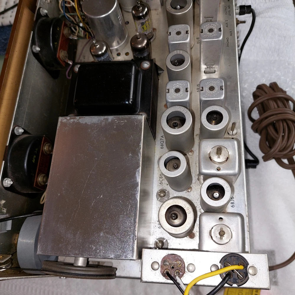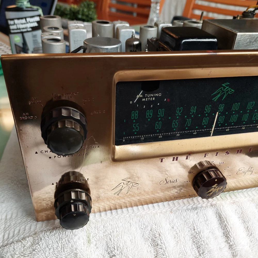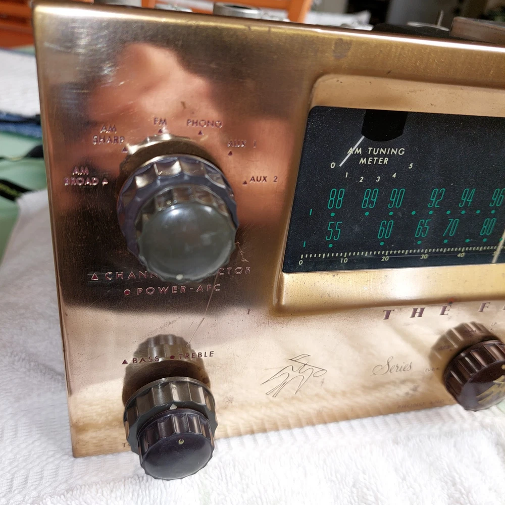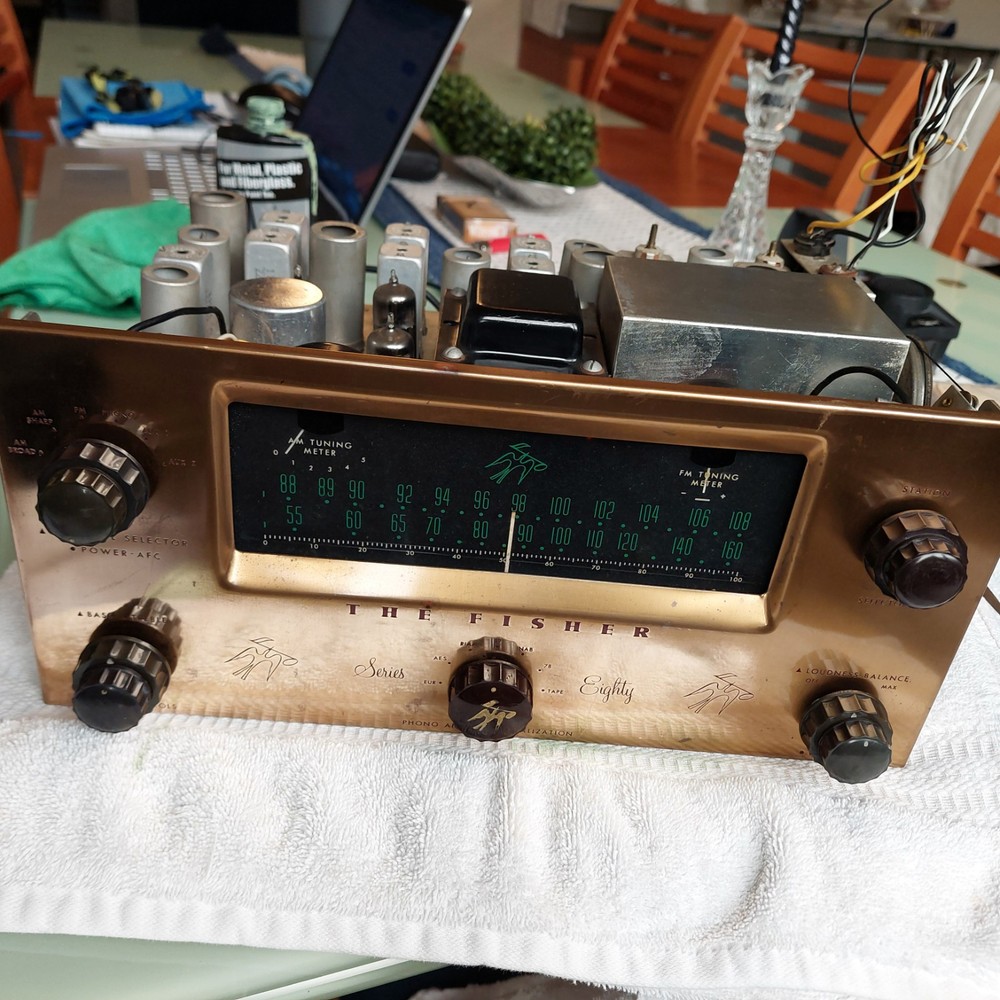 LOCAL PICKUP AVAILABLE Cutler Bay, Florida 33190 This unit is Cross-Listed.. This unit just back 03/06/2025 from a complete servicing/restoration by a Radio/HiFi/Ham Restoration Professional with 50 year Radio restoration experience Restoration work done to Factory Specifications. ONE(1) 1956 FISHER MODEL Lab Series 80-T High Quality MONO PREAMPLIFIER with AM/FM Radio(Mono) .Electronic CONDITION: WORKING AS DESIGNED Detailed Restoration included : REPLACING ALL OUT OF TOLERANCE OLD RESISTORS AND ALL PIO CAPS to NOS re-tested Polyester/Mylar tone caps at lower tolerances in both PreAmp and AM/FM Radio chassis. Re-Checked and adjusted AM/FM Alignment. Cleaned &Checked all point-to point solder connections, Cleaned Sockets, Pots, Switch & Contacts with CRC QD electrical contact cleaner then Deoxit5 electrical lubricant. Replace pilot light, Re-Tested all 16 tubes and replace one 6AU6 with nos USA vintage tube. All 16 tubes are USA vintage tubes a couple original 'The Fisher' tubes by USA manufacturers( Tung-Sol, RCA, GE ect). The Mono Pre-Amp section has 3 tubes (1xRCA Black Plate 1950s 12AX7, 1xGE 1950s 12AX7, 1x Original Fisher 6C4 ), The 6X4 rectifier is the original 'The Fisher' tube as are a couple other Radio tubes. Cosmetics are Fair to Good considering this unit is 70years old.: The glass is nice and Clear with complete silk screening visible. Both AM & FM Tuning Meters work as designed. Also the AM & FM Antenna 4pin connections on top right side support a Loop ,72 Ohm and a 300 Ohm Antenna with wire leads are provided for easy connection. All 5 Original Fisher knobs ('SongBirds') are in very good cosmetic and working condition and clean. We spent a couple hours cleaning the faceplate (had lots of aged tarnish on it) with Flitz polymer polish and went through 5 large micro-fiber cloths by hand rubbing tarnish/oxidation off the face. However it will cleanup a little better with another couple of hours of detailing with Flitz polish if you want to spend the time to do so . There is no rust but some pitting on this faceplace. Also it does have surface scratches in the face plate. See all the pics close up for cosmetics. Essentially we are selling this unit working as designed electronically restored and you make the call as to wither the cosmetics are good enough for you. The 3 tube preamp is connected to the power supply and 13 tube tuner internally via an umbilical cord.. From the service manual is this info: TUBE COMPLEMENT: A total of 16 including 2-6BQ7A, 1-6CB6, 1-6BE6, 1-6AU6, 1-6AL5, 2-12AX7, 2-6BJ6, 3-6C4, 2-6U8 and 1-6X4. PHYSICAL DATA: Overall dimensions: 12 3/4” wide, 8 3/4” deep, 6” high. Allow an additional 1” depth for control knobs. Shipping weight: approximately 21 pounds. Total of eight controls: Bass Control and Treble Controls - bass and treble controls are of the variable crossover type and afford up to 15 db boost and cut at 50 and 10,000 cycles, respectively. EQ Selector (7 positions: EUR, AES, RIAA, LP, NAB, 78, and TAPE) Volume Control Adjustable Loudness Control ; can be turned on or off from front panel. AFC Control and Power Switch Channel Selector (6 positions: AM Broad, AM Sharp, FM, Phono, Aux 1, Aux 2) Station Selector WE TESTED THIS Fisher LAb Series 80-T MONO AM/FM Radio & PREAMP WITH OUR RESTORED FISHER 1959 X-1000 (x-101) MONO INPUT. Testing AM Broadcast & AM Sharp1 CHANNEL and FM on Channel 2 and OUR PHILIPS 312 TURNTABLE WITH MM CART into the Phono 1 Channel(Mono) and with a CD Player(Stereo to Mono rca jack inserted) into AUX1 & 2 input channels, The audio sound is very clean and clear, We will Pull all Tubes and Tube Shields and the Front 5 Knobs and pack them in a separate box and place that box into the box with the well packaged Fisher 80-T. Please read out feedback, We have many years safe exp/ shipping fragile Vintage Electronics, Tubes & Speakers. PACKING & SHIPPING DETAILS Shipping will be calculated USPS ground for a very well packed and extra insulated package. Full value insurance is included. Being offered at a fair "Complete Restoration " Buy it Now Price. WE HAVE MANY YEARS OF EXPERIENCE SHIPPING FRAGILE ELECTRONICS VACUUM TUBES AND SPEAKERS. net dims approx: 13 "W X 9"D X 6"H NET WEIGHT: 14lbs shipped box dims: 16"W x12" X 10"H shipped box weight: 22 lbs WE will ship this unit Boxed Very Well Wrapped for safe shipping, THANK YOU FOR LOOKING! .