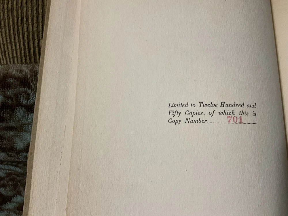 Not a book expert, I list the pros and the cons based upon what I see PROS - Vintage book 1909. Pages are clean, subtle, undamaged. Spine is strong, nothing loose. #701 of a printing run limited to 1250 copies CONS - Exterior boards are tanned and worn. Rear top corner of board is damaged. See pics, ask any questions you may have.