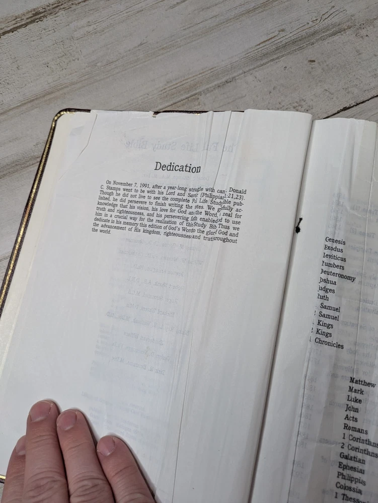 This Full Life Study Bible is a treasure for any believer! The genuine leather cover feels premium, and despite its age, it’s in great shape—just some minor wear and notes that add character. The Pentecostal/Charismatic commentary is deeply insightful, making scripture come alive. Perfect for study and reflection, it’s a rare find with rich historical and personal value. Loved the dedication inside—gives it such a special touch. Highly recommended!