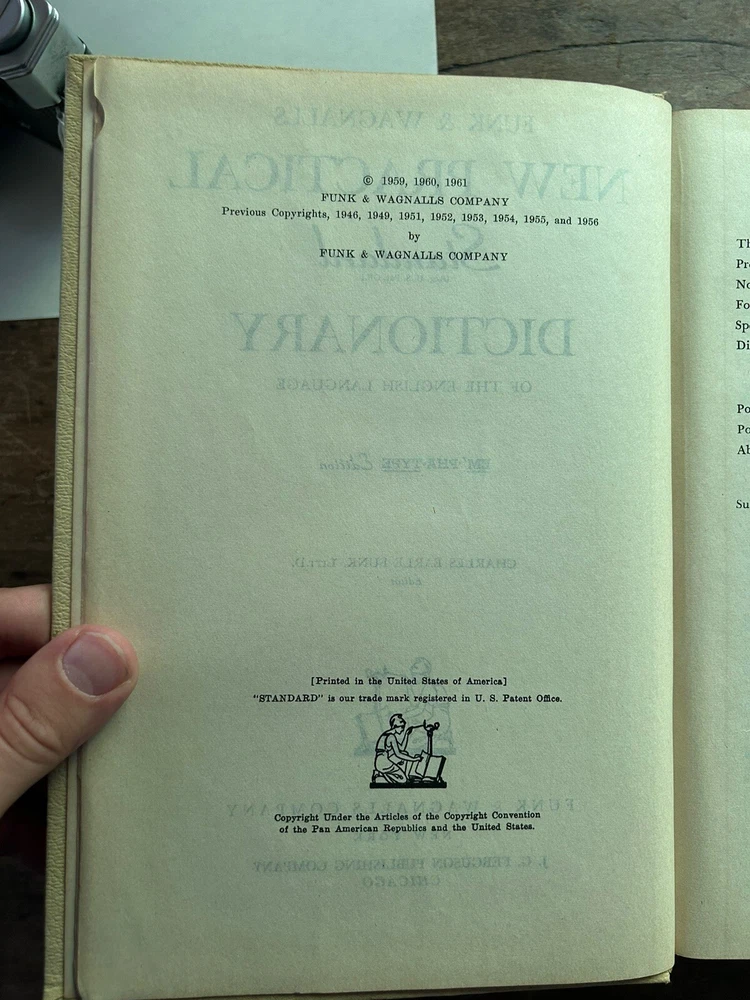 Funk & Wagnalls New Practical Standard Dictionary VTG 1960 Leather Bound. Shipped with USPS Media Mail.