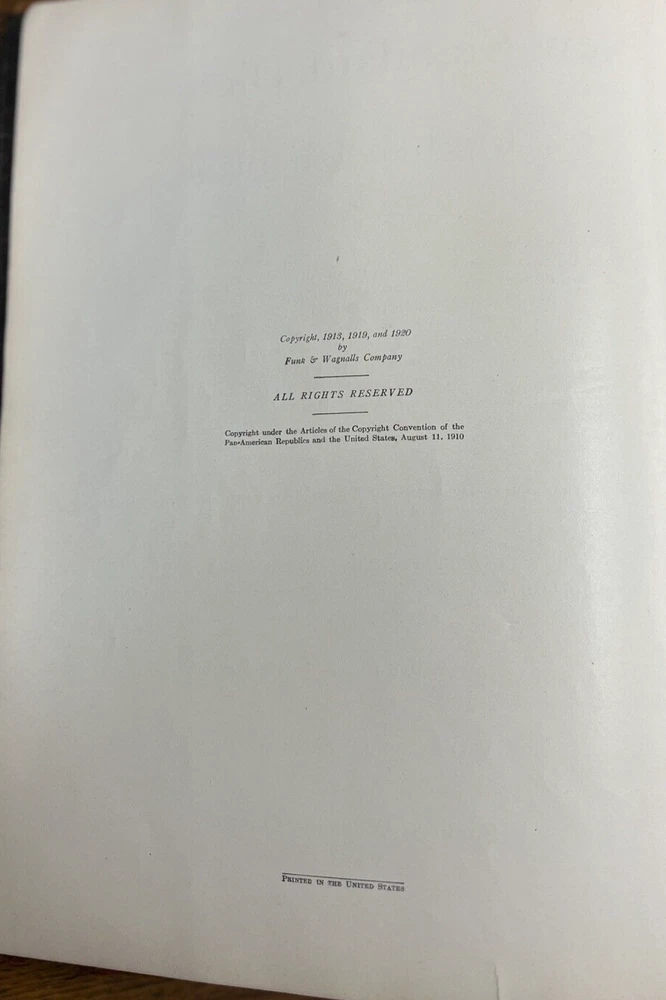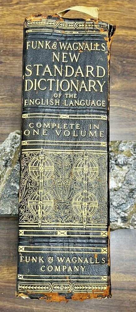 Funk & Wagnalls New Standard Dictionary of the English Language, Complete in One Volume Published in 1921 by Funk & Wagnalls Company Cover is significantly worn on front and back boards and spine consistent with age. Gilt edged pages are intact, clean, unmarked. 2916pp Measures approximately 12.25 x 9.25 x 3.75 inches See photos vk