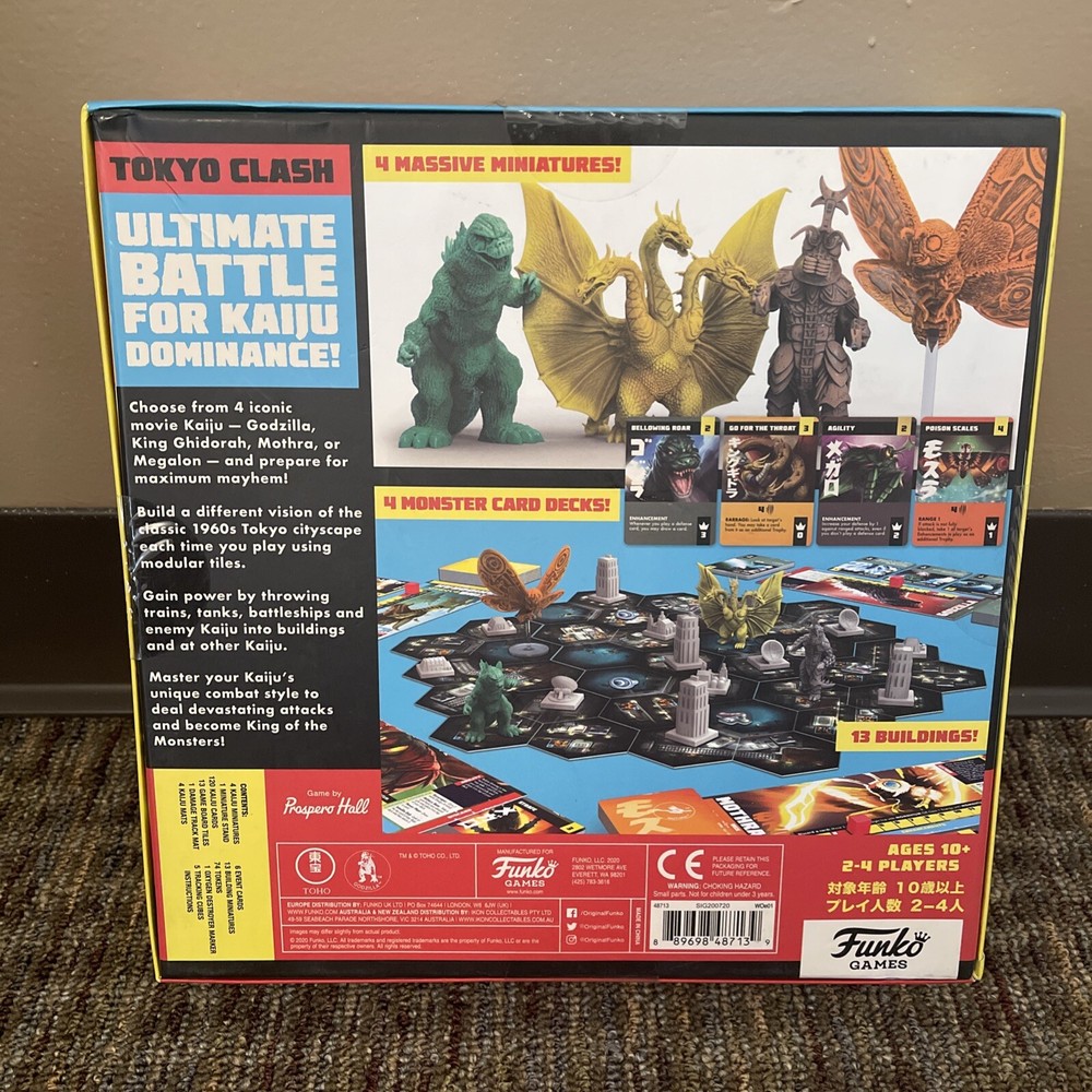 Embark on a thrilling strategic journey with Funko Games' Godzilla Tokyo Clash. This brand-new, sealed board game promises hours of engaging entertainment as you plot your way through the chaos of Tokyo. With a theme that pits monstrous adversaries against a backdrop of iconic Japanese landmarks, players must think critically and adapt quickly to emerge victorious. Designed for the strategic board game enthusiast, Tokyo Clash features dynamic gameplay that balances luck and skill. Whether you're a collector of Funko memorabilia or a connoisseur of thoughtful gaming experiences, this set is a perfect addition to your collection. Dive into the action and see if your tactics can outsmart the might of Godzilla and company. Item is in brand new sealed package