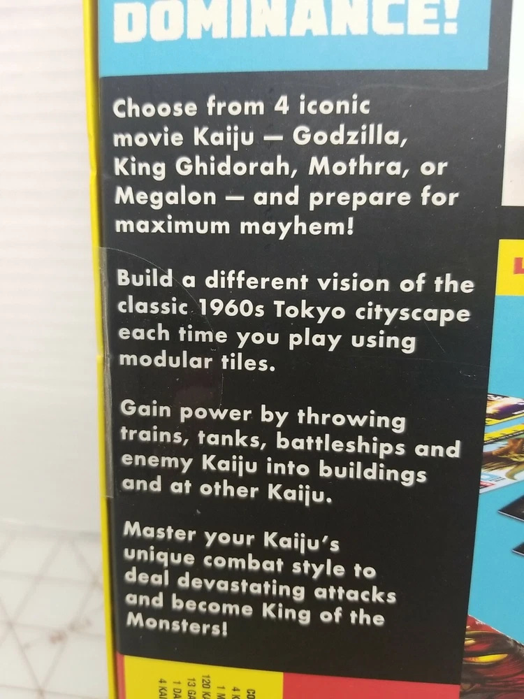 Funko Games: Godzilla - Tokyo Clash Strategy Game seaked new. CHECK OUT OUR OTHER AUCTIONS FOR MORE GREAT BOARD GAMES In Godzilla: Tokyo Clash , you play as the Earth's most fearsome Kaiju — Godzilla, Mothra, King Ghidorah, and Megalon — battling for dominance as the most terrifying monster in Japan. With detailed miniatures of the legendary monsters and a modular cityscape of 3D buildings to destroy, it's an epic battle every time you play! In more detail, each player has their own deck of cards unique to the kaiju they control. As you throw trains and tanks at the opponents and attack them directly to cause damage, you can burn cards out of their deck, reducing their options on future turns. As you stomp through the city, you can earn energy, which can help you lay out permanent enhancements to your abilities.