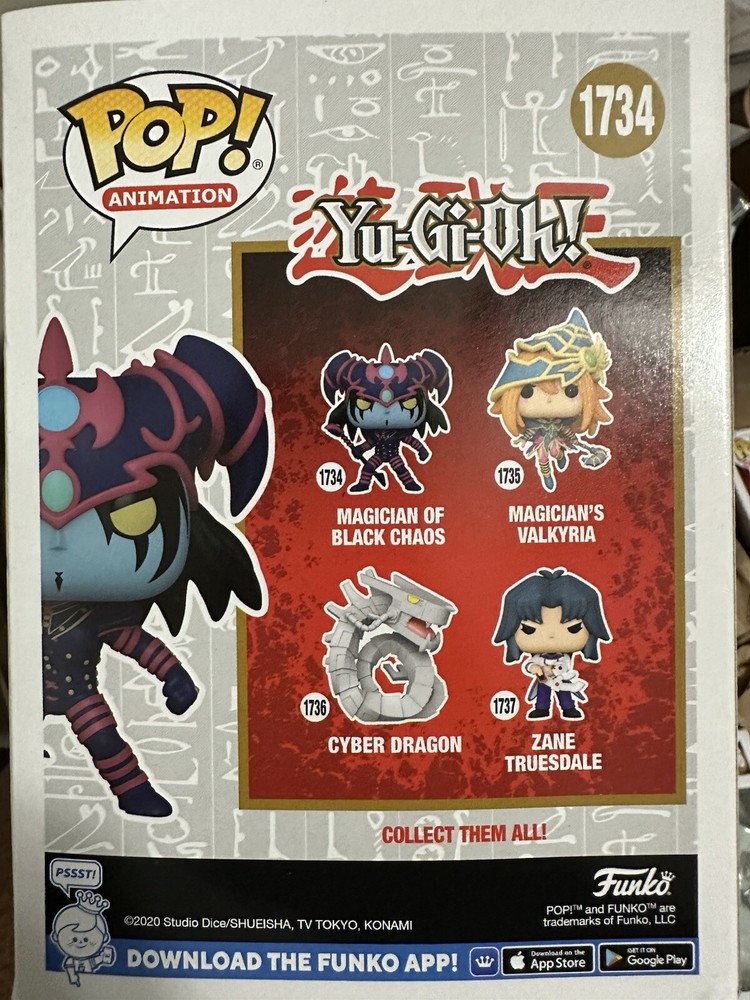 Funko Pop! Vinyl: Yu-Gi-Oh! This bundle includes four Yu-Gi-Oh pop funko; #1734 magician of dark chaos, #1735 magician’s valkyria, #1735 cyber dragon, and #1737 zane truesdale. No Returns accepted....
