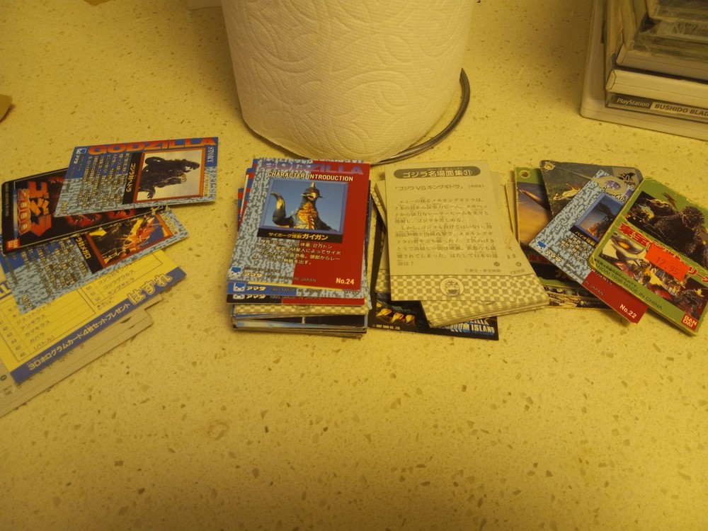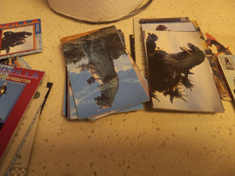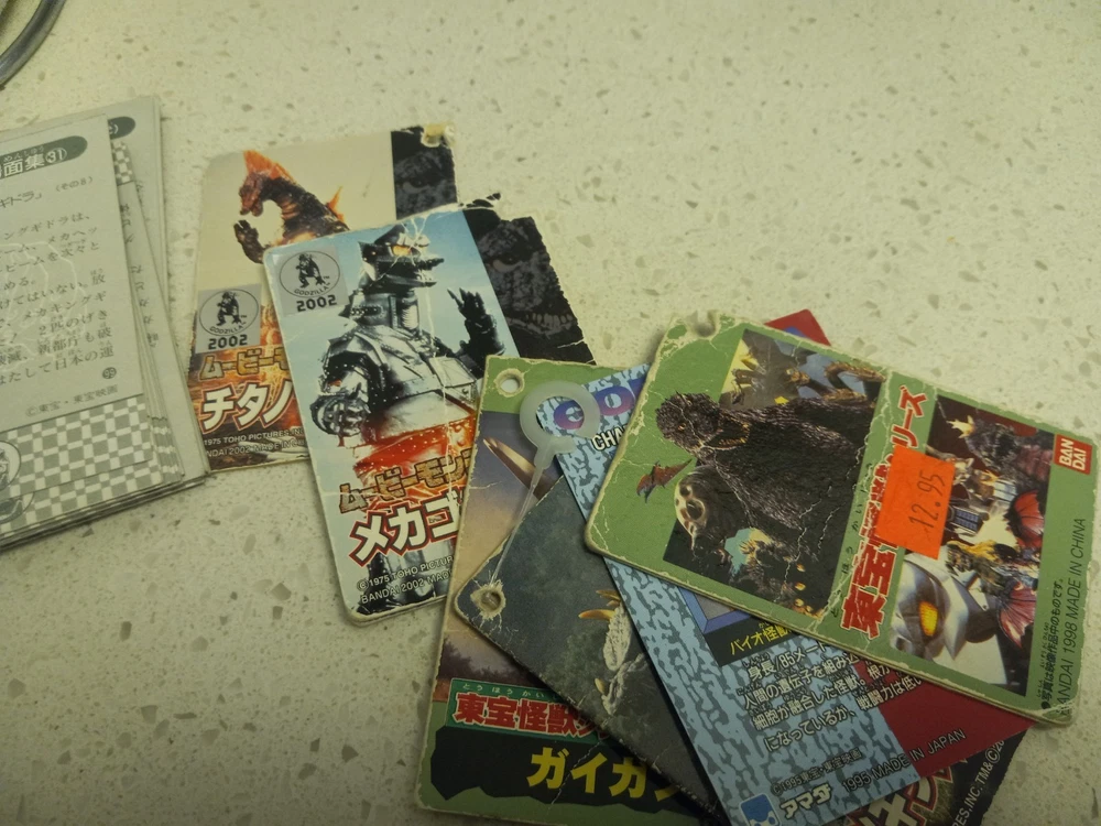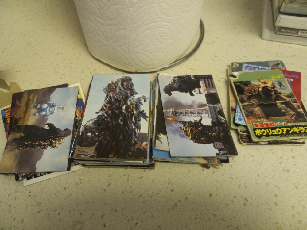 a bunch of old godzilla cards all are in varying condition and some are from different sets