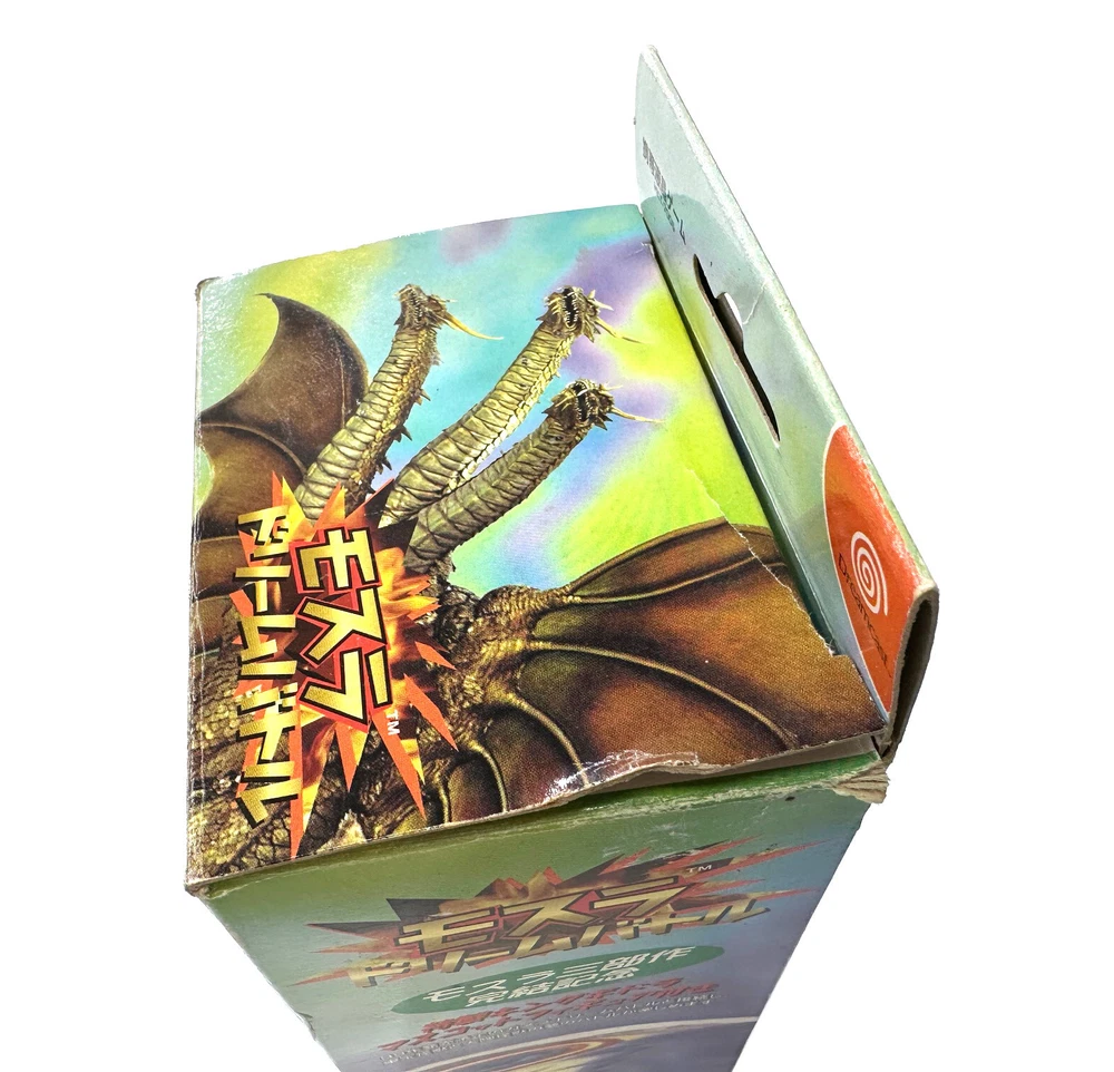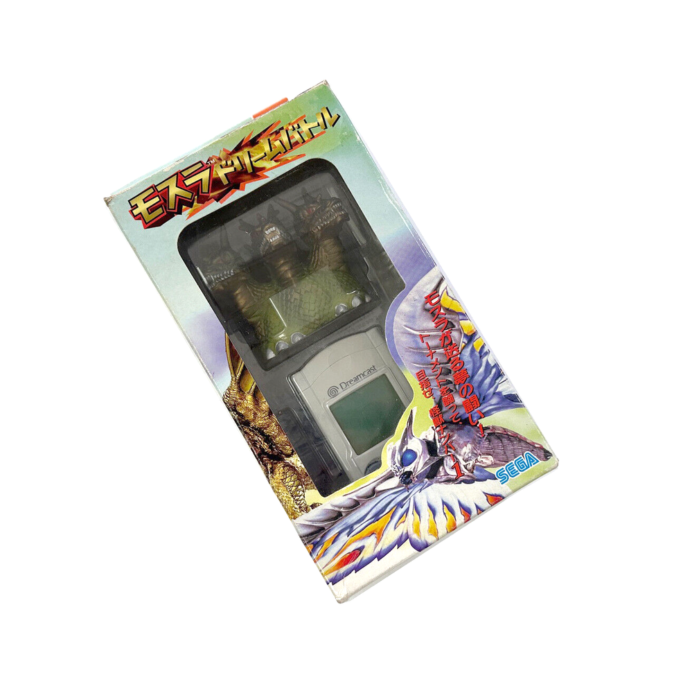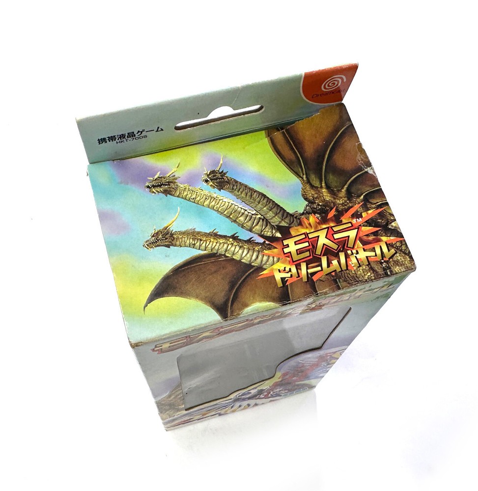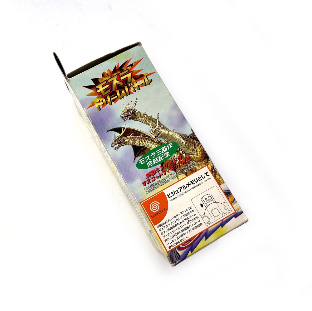 You are bidding on a Sega Dreamcast (Japanese Import) GAMERA GHIDORAH MOTHRA GODZILLA VMU Memory Card In box with papers etc. This item has Sitting in storage for about 15 years. Very nice condition with some sticker residue on the upper right corner. and a tear on the cardboard where you need to open the box all defects (pictured) Offered as-is, no returns or partial refunds, etc. Assume it will need a new battery after 20 years.