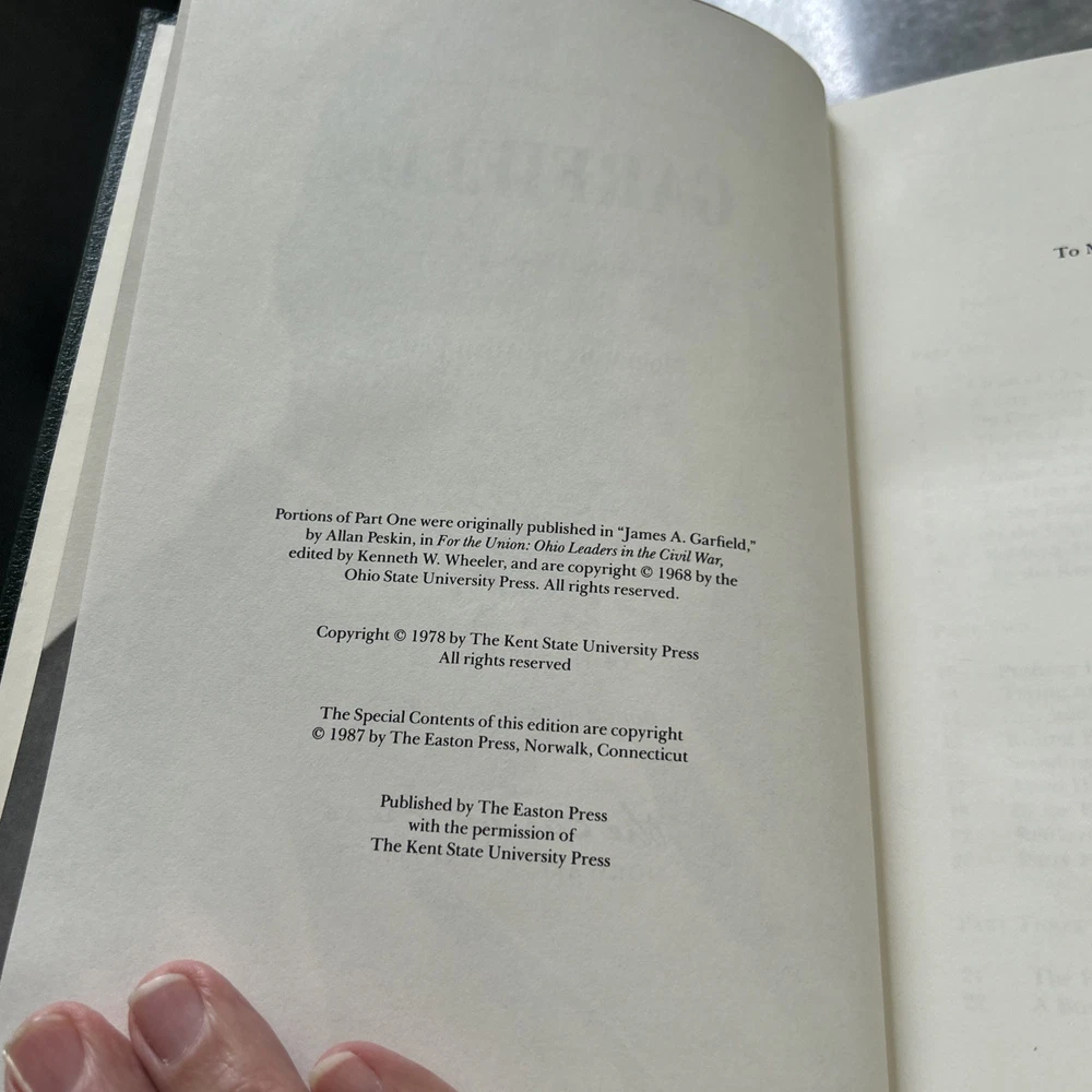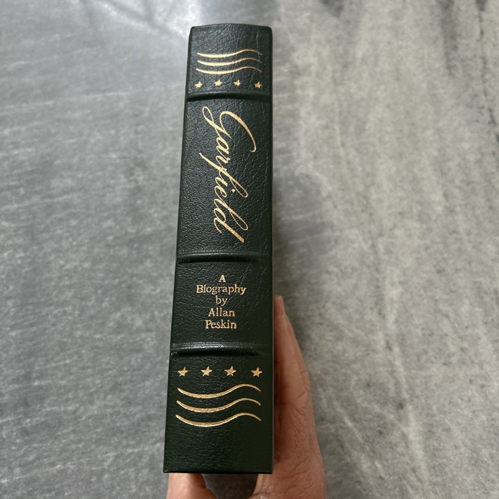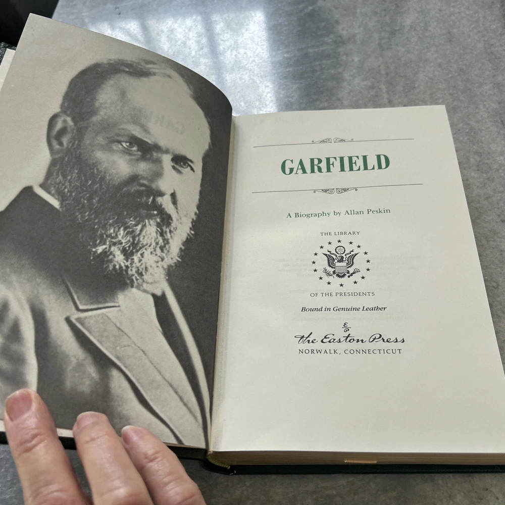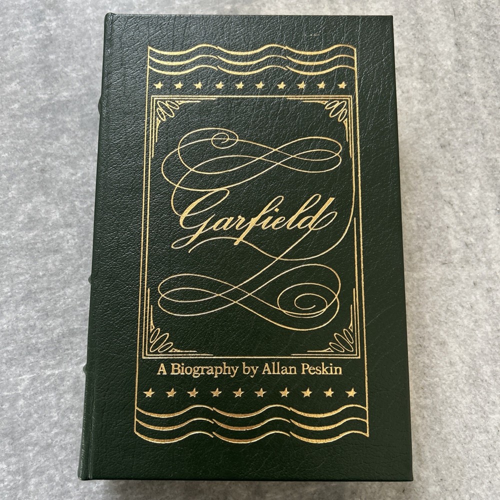 The product is a rare and highly collectible book titled "GARFIELD" by Allan Peskin, published by Easton Press in 1987. This luxurious leather-bound edition is part of the Library of Presidents series and features a gold-gilded cover, ribbon bookmark, and other special attributes. The book, written in English, offers a biography and autobiography of a historical figure, making it a valuable addition to any collector's library, especially for those interested in presidential biographies and North American history.