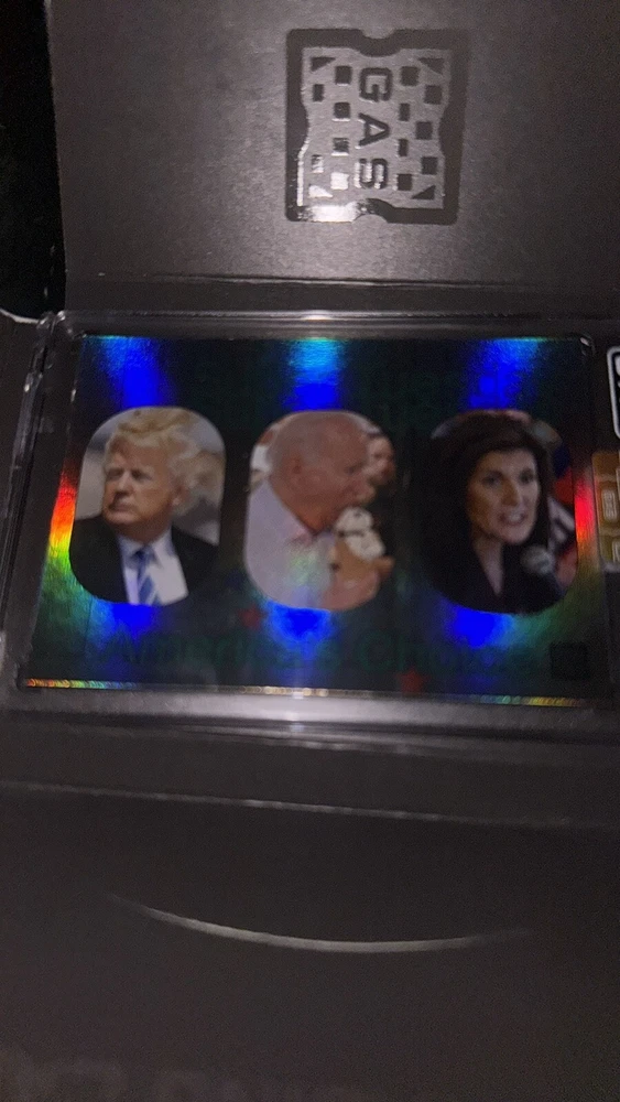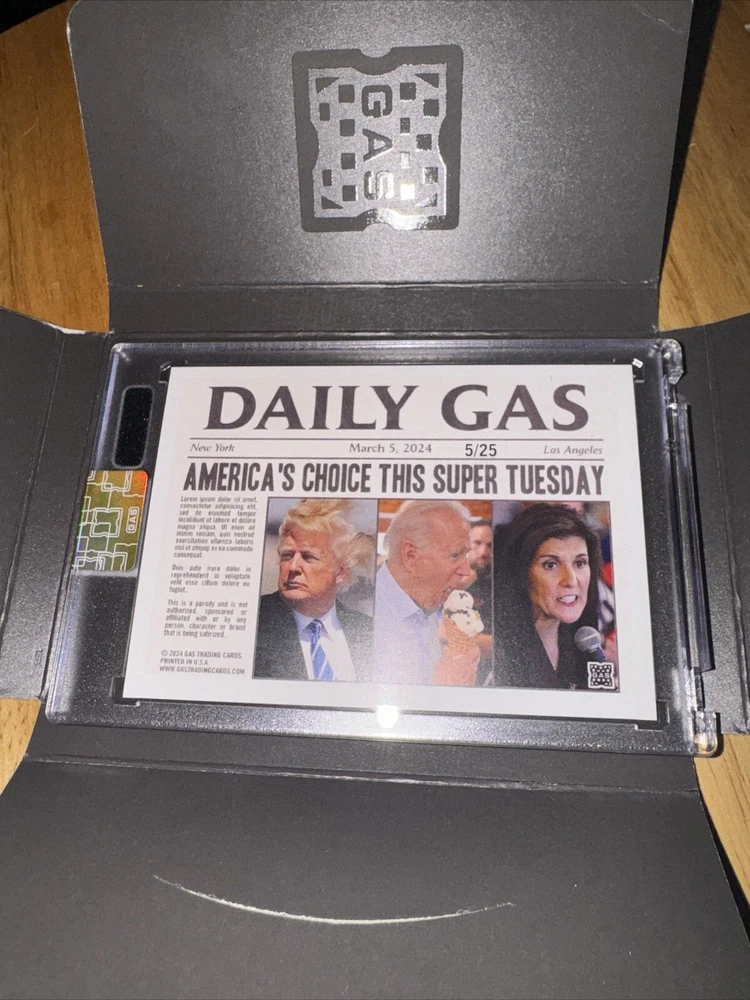 This is two cards from the G.A.S trading card collection called daily gas which featuresthe top GOV runners at their worst one is a foil and one is in a cracked hologram. They’re both extremely rare o...