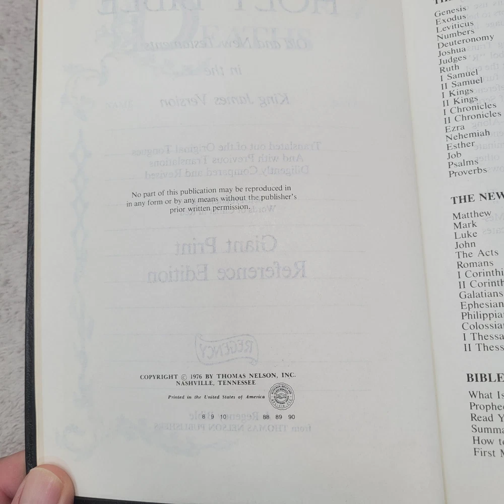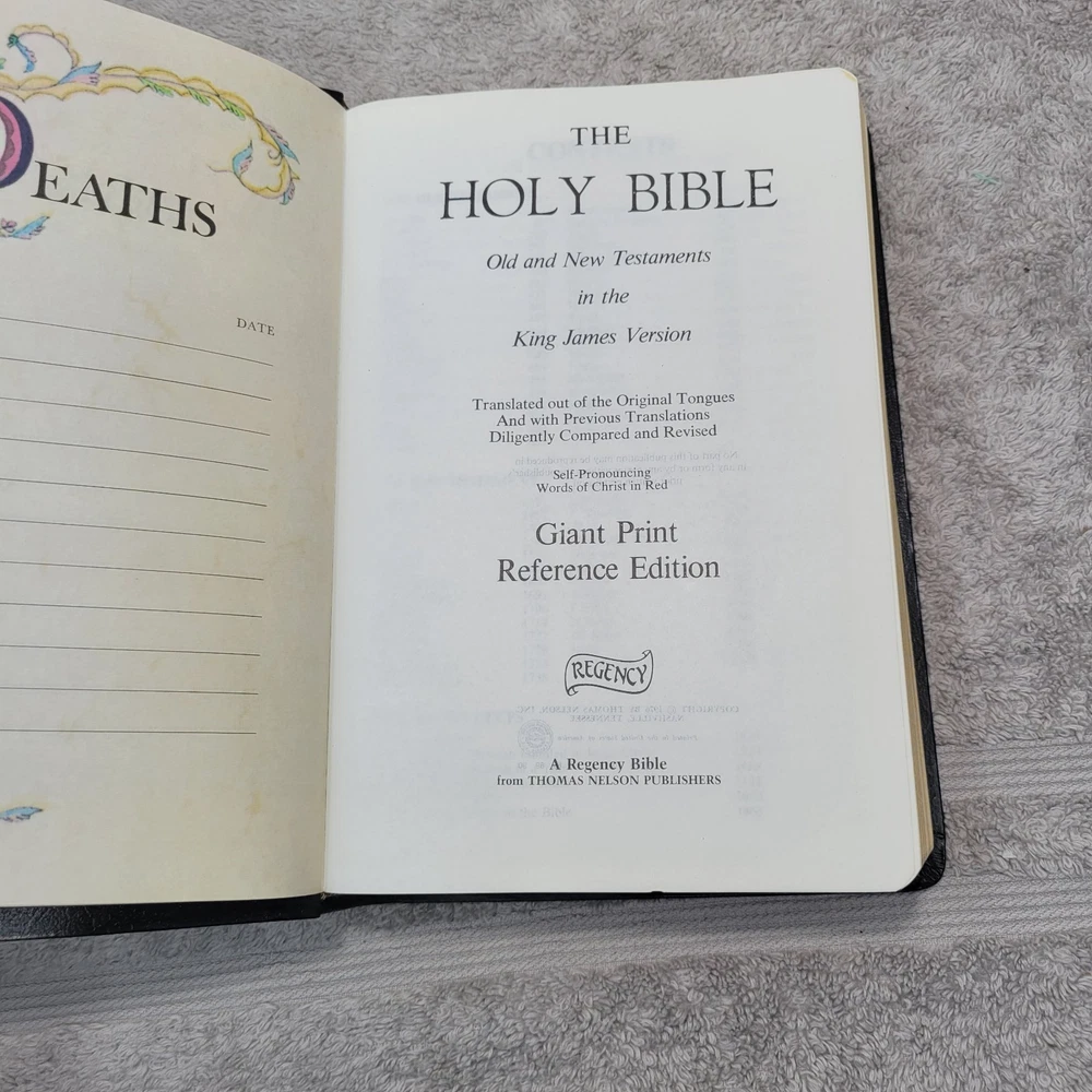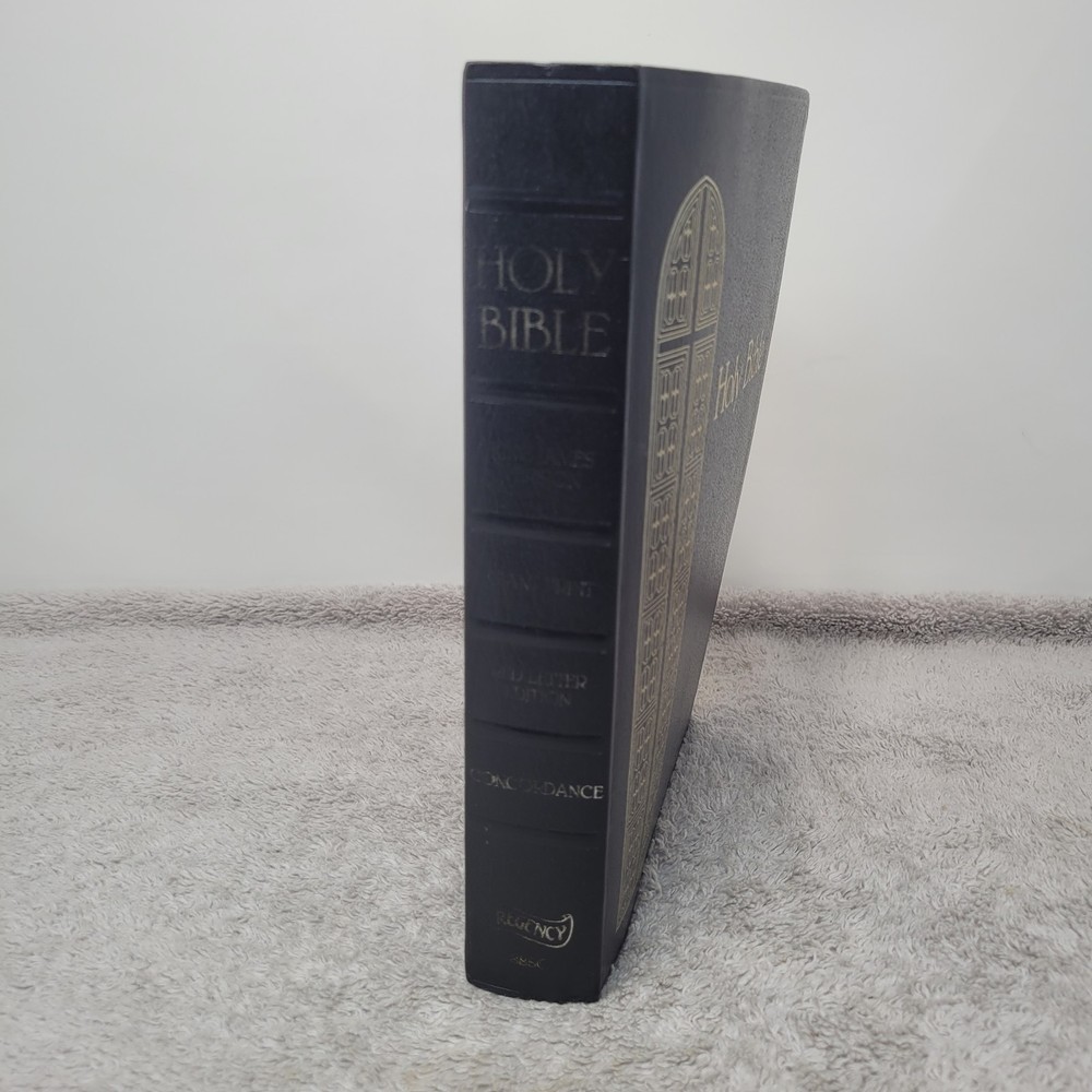 GIANT PRINT KJV HOLY BIBLE Red Letter Edit. Concordance Regency 1990 Nelson. Some wear to the lettering on the spine. See photos.