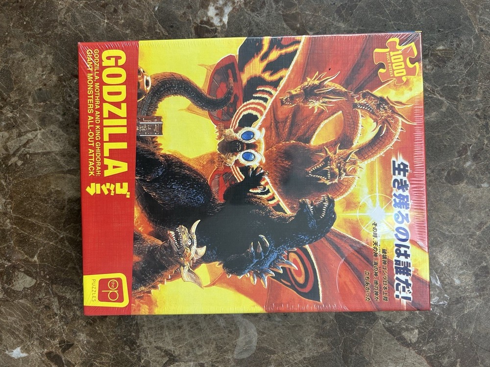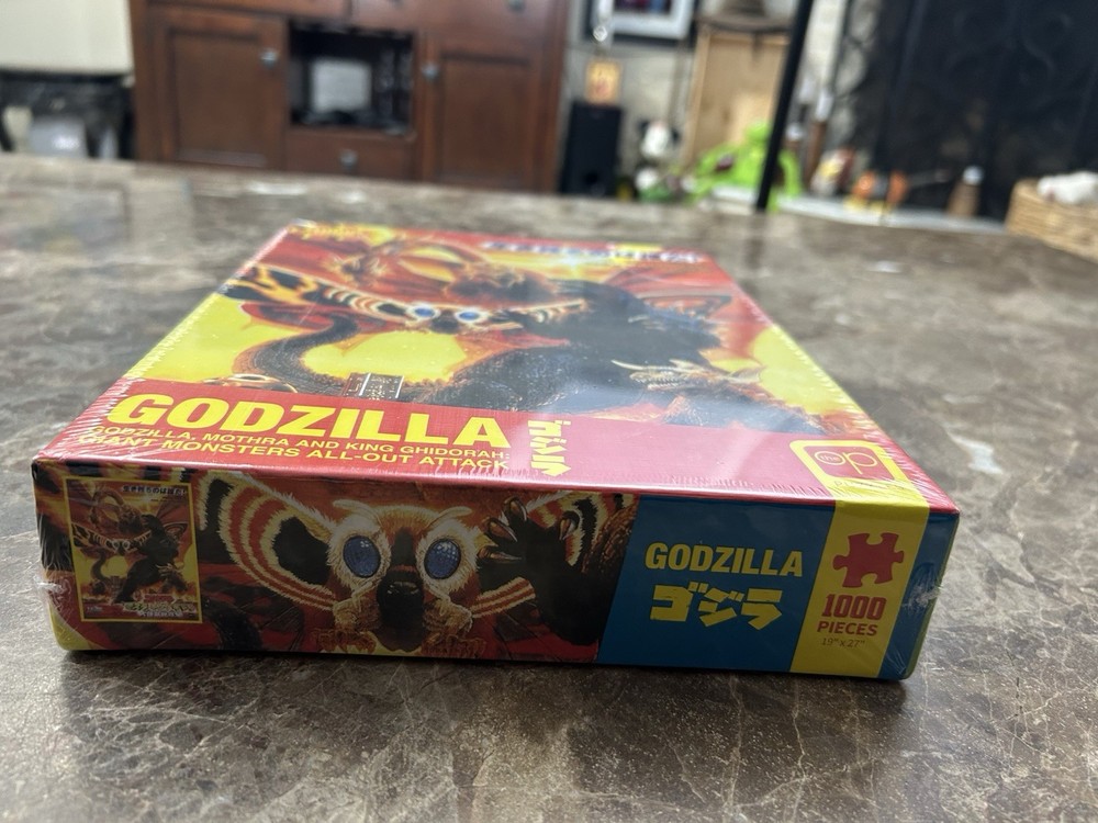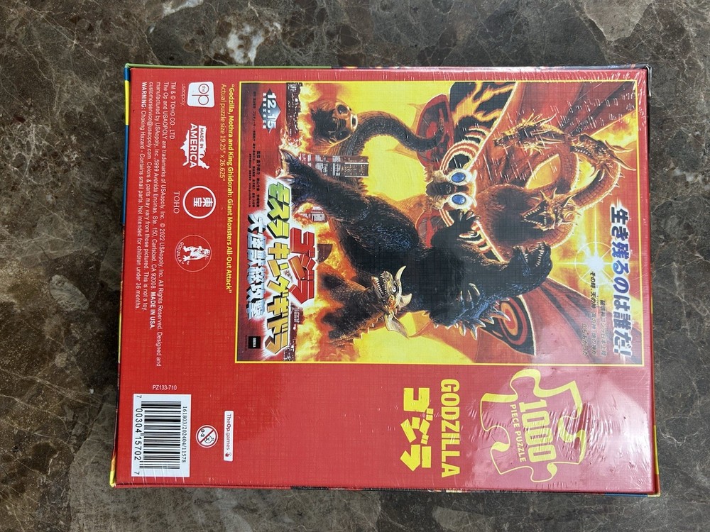 Dive into the world of classic monsters with the GODZILLA All Out Attack 1000 Piece Jigsaw Puzzle. Featuring iconic characters Mothra, King Ghidorah, and Godzilla himself, this puzzle promises a thrilling challenge for fans of horror and monster-themed adventures. With its striking multi-color palette, it's a visually stunning piece that's sure to captivate. Crafted from high-quality cardboard and designed with interlocking pieces, this puzzle offers a satisfying assembly experience for puzzle enthusiasts and casual fans alike. Whether you're a collector of Godzilla memorabilia or simply looking for an engaging activity, this puzzle from OP Games, released in 2022, is a perfect fit for your collection or game night. Please see photos before bidding What you see is what you get! Check out our other auctions. No refunds and no returns