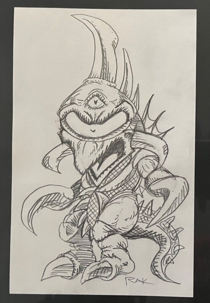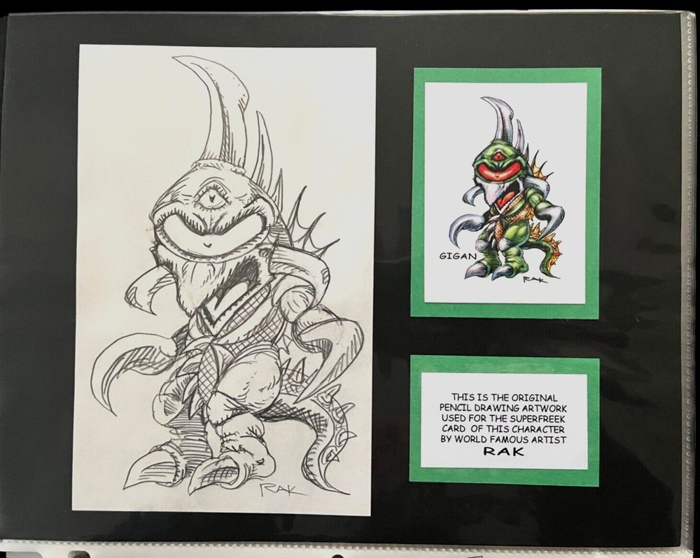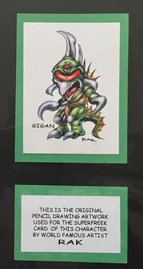 VERY RARE ORIGINAL SUPERFREEK ART SALE! this auction is for the original pencil art used for the GIANT MONSTER GIGAN superfreek card! This is your chance to own a piece of art from world famous artist RAK (Robert A Kraus)! RAK is selling a few ORIGINAL ART pieces from his popular SUPERFREEKS mini art print line. These offerings are one of a kind, the actual art used for the best selling SUPERFREEK card of this character! This original is the pencil drawing used for the card. Each original comes with a certificate of authenticity and a signed card of the character the art was used for! The art is mounted on archival, acid free 8.5"x11" card stock and are bagged and boarded! "Thanx for looking, i have sold my SUPERFREEK cards all across the USA, from San Diego comic-con to NYCC, to Dragon Con and Mega con, etc., from coast to coast and north to south! I would be honored for you to add one of my originals to your collection, so I hope ya win this UNIQUE original art piece by me, RAK!" this ORIGINAL ART comes in a protective sleeve and with FREE SHIPPING! have fun and a great day! sincerely, RAK