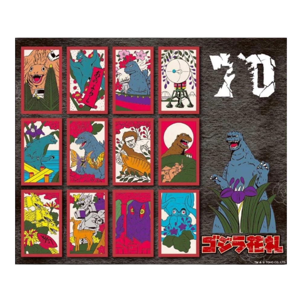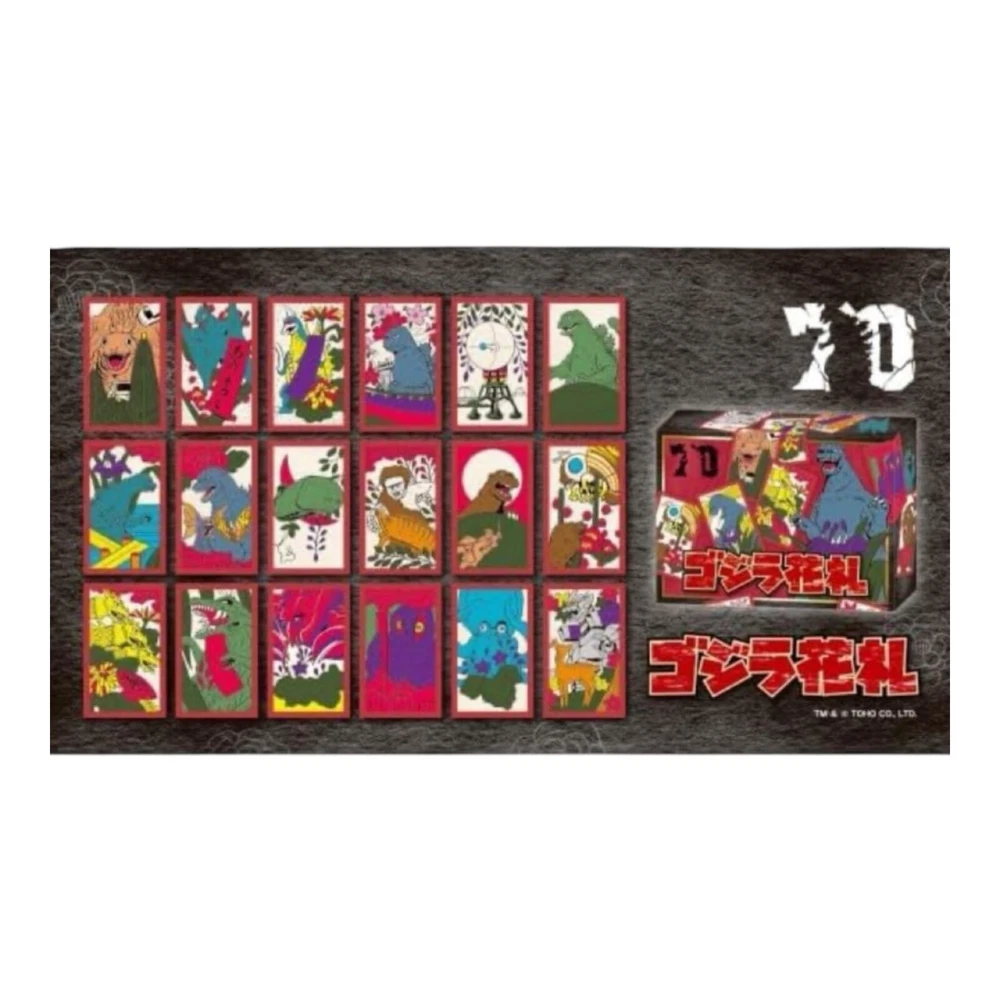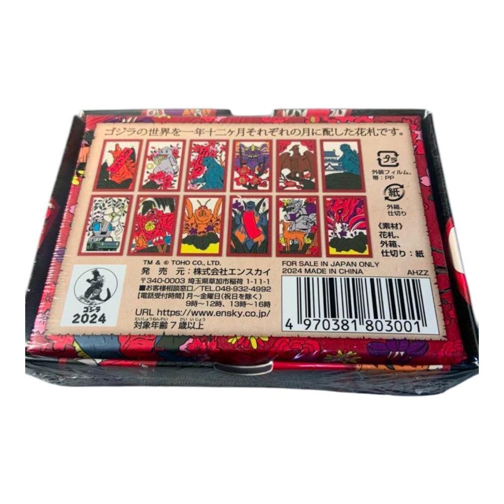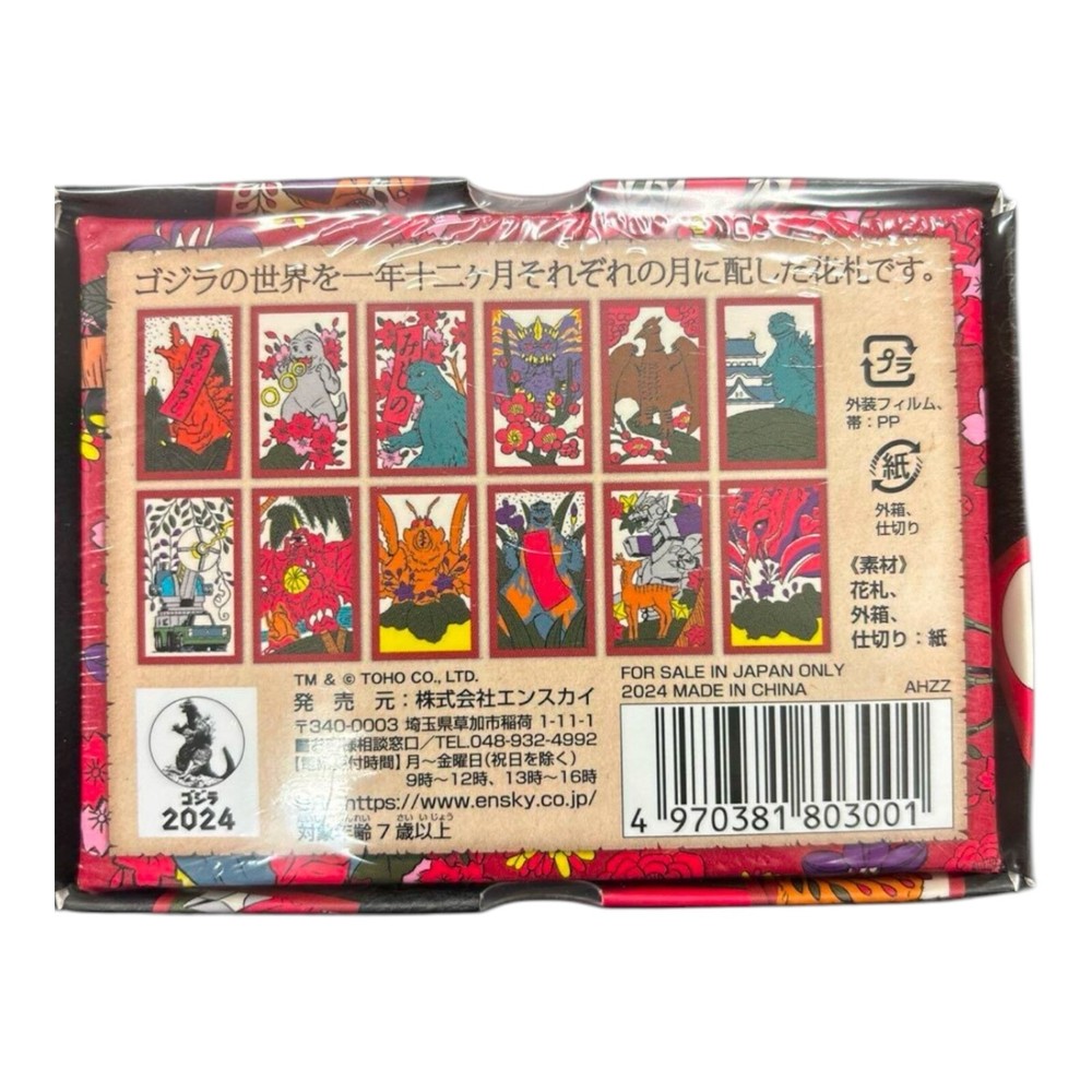 The product is a set of GODZILLA Hanafuda Japanese Playing Cards by Ensky, celebrating the 70th Anniversary in 2024. Made in Japan, these limited edition playing cards feature a unique Anime theme inspired by the iconic GODZILLA franchise. The cards are designed in the traditional Hanafuda style, offering a blend of Japanese culture and popular entertainment for collectors and fans alike.