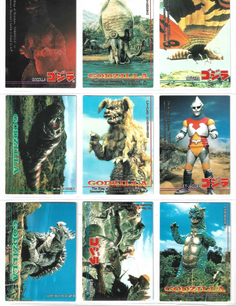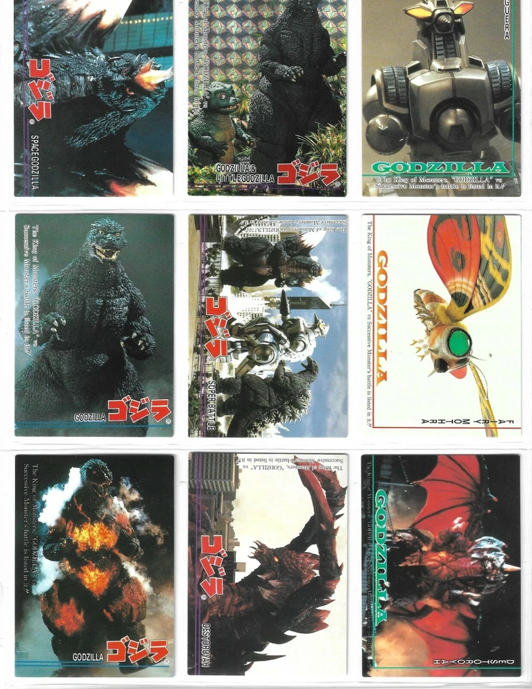 GODZILLA Japanese Trading Card Collection Lot 1995 JPP/Amada Missing #1, #48, #53, #97, #99 Missing Checklists #1, #3, #8 Cards were placed in plastic sheets when purchased All are in NM condition