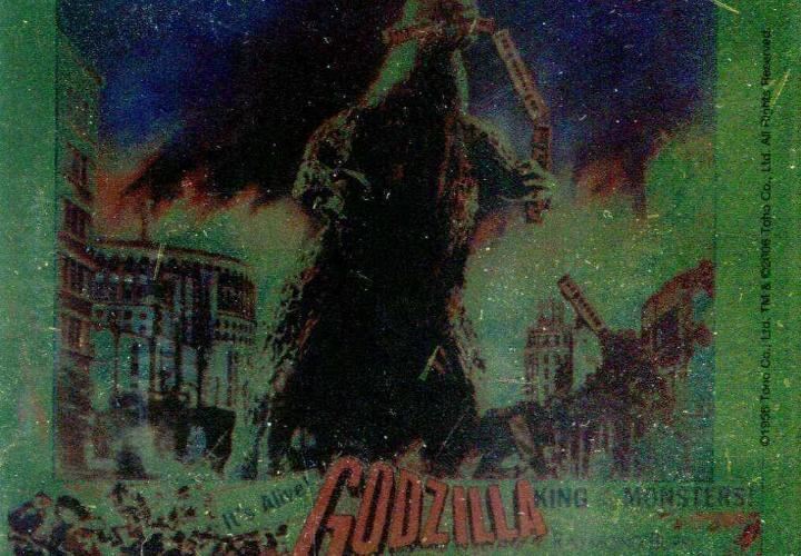 Description: GODZILLA: KING OF THE MONSTERS Puzzle Chase Card Contents: 1 single puzzle chase card, "Chewing Train Cars." Manufacturer: Comic Images, 2006. Condition: Mint/Near Mint.