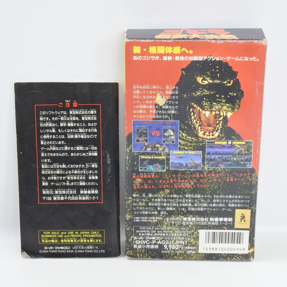 GODZILLA Kaiju Dai Kessen Super Famicom Nintendo 2165 sf JAPANESE RETRO VIDEO GAMES JUST CLICK IT !! CONDITION As photo shown. CONTENT Photo shown everything you will have. SHIPPING Combined Shipping Available for more than 2 purchases at the same time !! JAPANESE RETRO VIDEO GAMES JUST CLICK IT !!