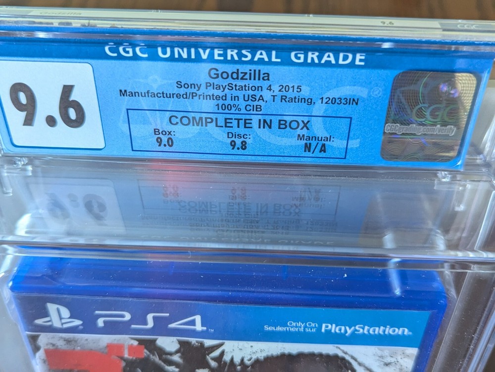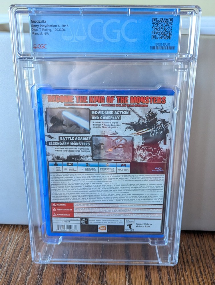 This is a must have for any Godzilla and/or video game collector. This is a rare Godzilla game in case, graded by CGC. Overall grade of 9.6 (box 9.0, disc 9.8, manual N/A). This comes from my own personal collection, adult owned/handled, from a smoke free home. Game is now well preserved for any avid collector.