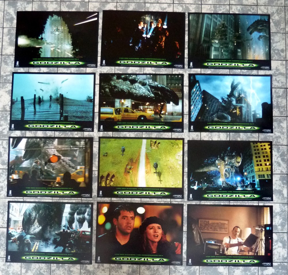 12 Original German Lobby Cards (complete Set) from German theatrical first release in 1998, "Godzilla" Measures: approx.: 11.6x8.25inches ca. 29,5x21cm Description/Condition: 8 Original German Lobby Cards (complete set) from German theatrical first release . Lobbies show ing NO Pins, and minor signs of wear . Excellent to nearly mint Shape , w atch XXL-Photos . S hipping Costs / Auslandsversand: European Union and Overseas: € 9.00 USD by tracked Mai. Important: Please wait with your payment, until you receive my revised invoice, because you have to pay Shipping costs only once (especially for custumers from abroad, who are buying more than 1 Article)!!! Please help to avoid further Transaction-charges/fees etc. Thank you very much ! For further Questions do not hesitate to contact me.
