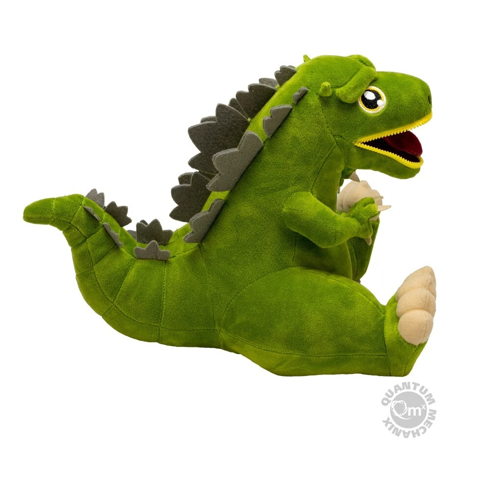 GODZILLA STANDARD PX ZIPPERMOUTH PLUSH QUANTUM MECHANIX INC From Quantum Mechanix. A PREVIEWS Exclusive! While Godzilla was originally depicted as dark gray or black in color, one of his most common forms is as a big green baddie: monstrous, mean, and ready to destroy anything in his path! This Godzilla PREVIEWS Exclusive Zippermouth Plush appears of a more reptilian persuasion, but don't let first impressions fool you. Sitting 8 1/2" tall, he is one fearsome character. When unzipped, his mouth reveals a large red heat ray and a presumably equally large appetite. His bright green body, pointy gray dorsal fins covering his back, fierce felt claws, and serious brow are all part of what comes together to elevate this plush to collectible status.