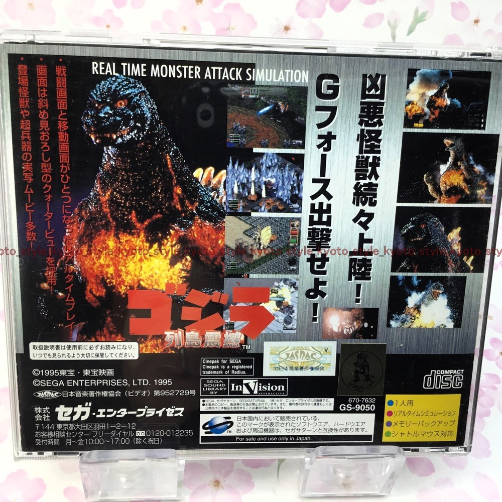 Missing manual and front cover art. Embark on a thrilling journey with SEGA's classic action-adventure game, Godzilla for the Sega Saturn. Released in 1995, this Japanese import offers players an engaging experience as they navigate through the streets of Tokyo, battling massive creatures and relieving the city of its destructive fate. The game caters to players of all ages with an "E for Everyone" rating, and it's presented in the NTSC-J (Japan) region code, making it a unique addition for collectors and enthusiasts. With its origins in the United States, this single-unit gem is a must-have for those seeking to complete their Sega Saturn library with a touch of nostalgia and timeless fun.