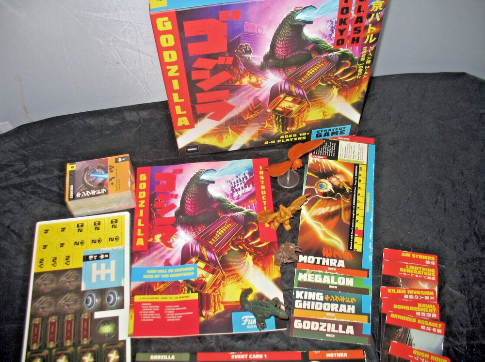 GODZILLA TOKYO CLASH GAME by FUNKO MOTHRA MEGALON KING GHIDORAH GODZILLA FIGURES open box ... complete set ... see pics sealed cards ... sealed token cards instruction booklet good box MORE VINTAGE MODEL KITS IN MY OTHER AUCTIONS. Condition statement does not imply that the item is in perfect condition or free from imperfections or the effects of aging Please look carefully at the pictures as they are part of the description. Items are sold in AS IS condition as found. Items shipped by FEDEX, UPS, or USPS at our discretion