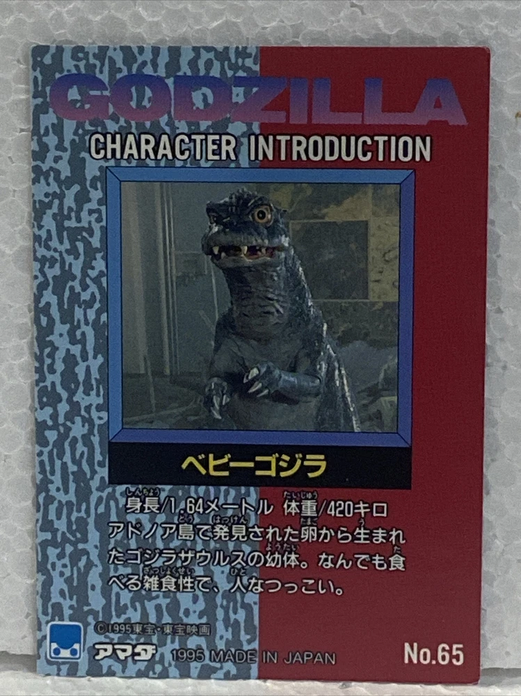 ГОДЗИЛЛА - коллекционная карточка #65 - BABY GODZILLA - 1995 Amada РЕДКАЯ - персонаж вступление