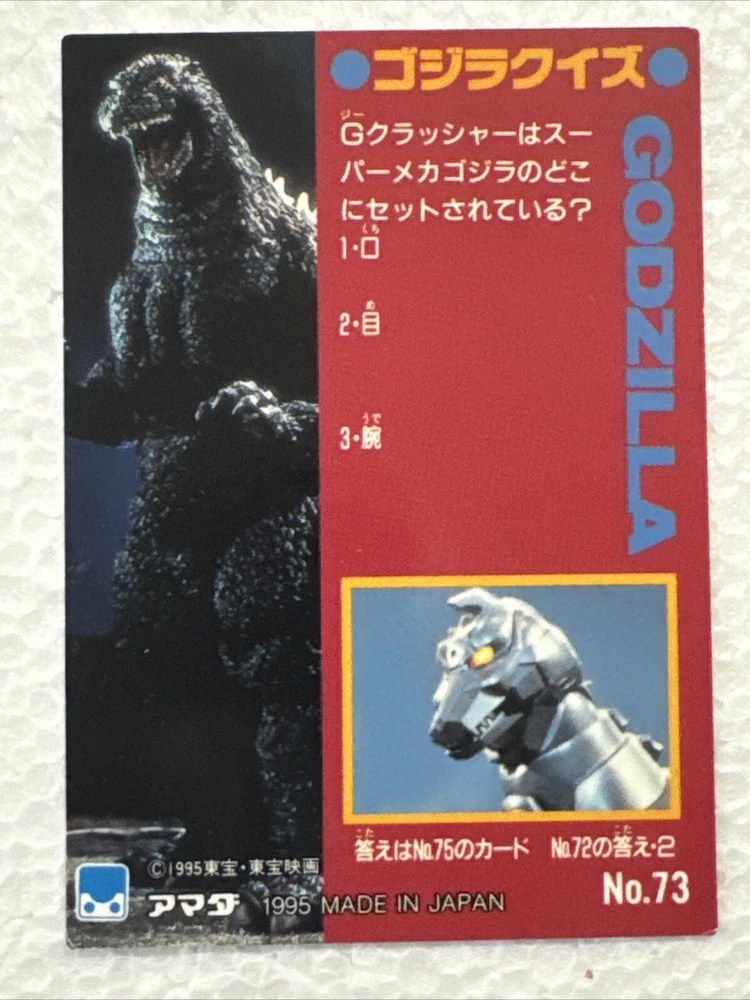 GODZILLA - Trading Card #73 - KING of MONSTERS - 1995 Amada RARE - Quiz