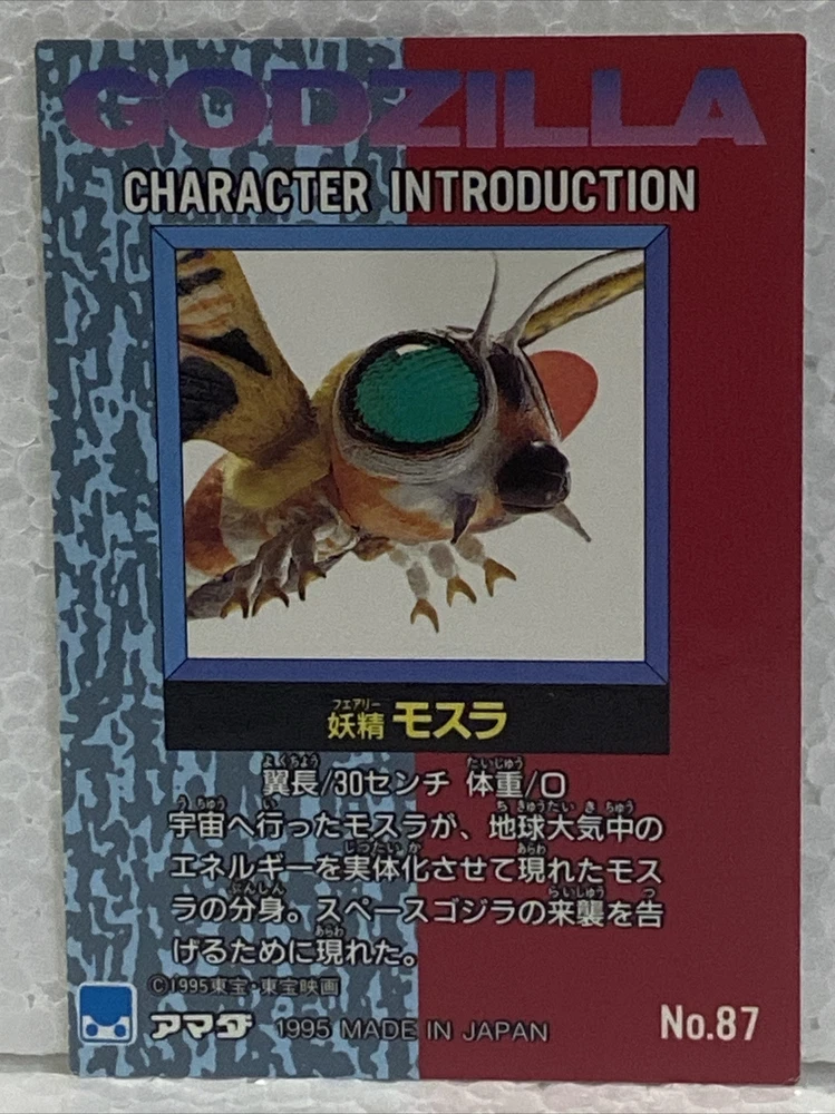 GODZILLA - Trading Card #87 - MOTHRA - 1995 Amada RARE - Character Introduction