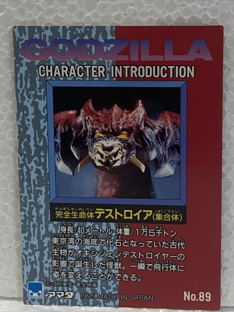 ГОДЗИЛЛА — коллекционная карточка No89 — ДЕСТОРОЯ — 1995 Amada, РЕДКИЙ персонаж, вступление