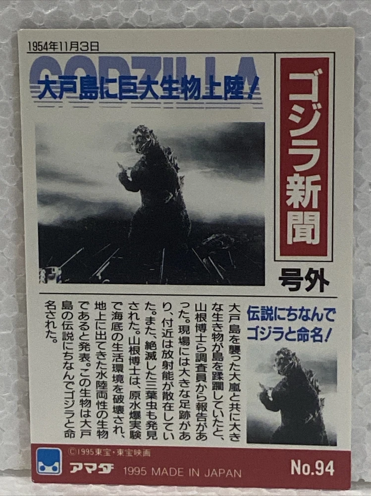 ГОДЗИЛЛА — коллекционная карточка No94 — ОГНЕННАЯ ГОДЗИЛЛА — 1995 Amada — РЕДКАЯ