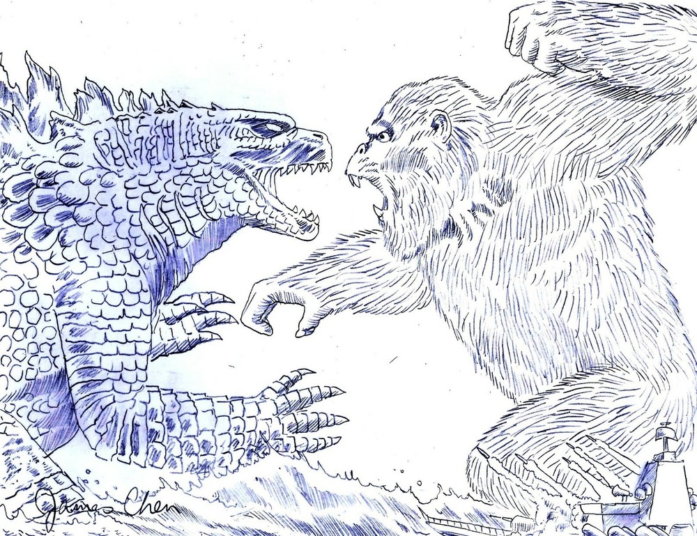 UP FOR SALE IS A ONE OF A KIND HAND DRAWN ORIGINAL COMIC ART PENCIL SKETCH OF GODZILLA VERSUS KING KONG ON 8 1/2'' X 11'' CARDSTOCK BY COMIC BOOK ARTIST JAMES CHEN WHO DID ARTWORK FOR FIST OF THE DRAGON # 1,2,3 & 4 AND LADY DRAGON # 0. ARTWORK IS SIGNED BY THE ARTIST. ARTWORK IS SOLD AS IS. I DO NOT ACCEPT RETURNS.