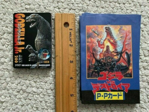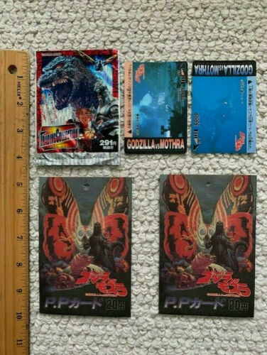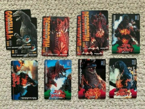 THIS IS A TERRIFIC AND VINTAGE LOT OF 12 GODZILLA TRADING CARDS (10 of one style and 2 of another) ALONG WITH 13 WRAPPERS (10 of one style, 2 of one style, and one of another style). BUYER WILL GET EVERYTHING YOU SEE PICTURED. The cards and wrappers are all in terrific condition. I am pretty sure these are all from the mid 1990's. Will look amazing once displayed. SOLD AS IS. Please ask any and all questions before buying this lot of cards/wrappers. Shipping for this lot will be $6 and items will be sent well packaged. I only ship overseas with ebay global.