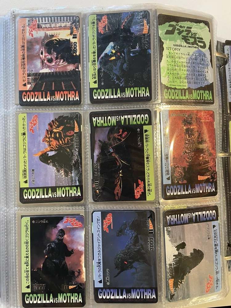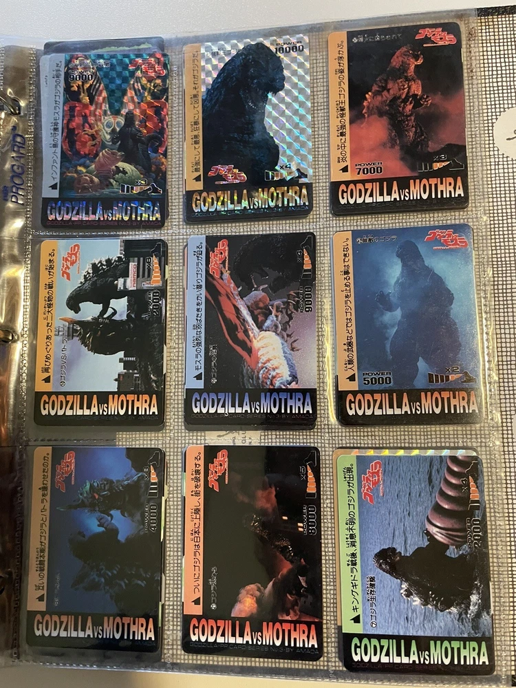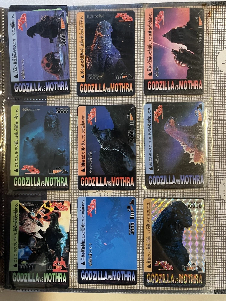 Godzilla vs Mothra trading cards purchased in Japan in the 1990’s by my dad, brother, and myself. Make an offer Cards have been kept in good condition for over 30 years just let me know if you want specific pictures of cards. Thanks for looking at this post. Have a good day.