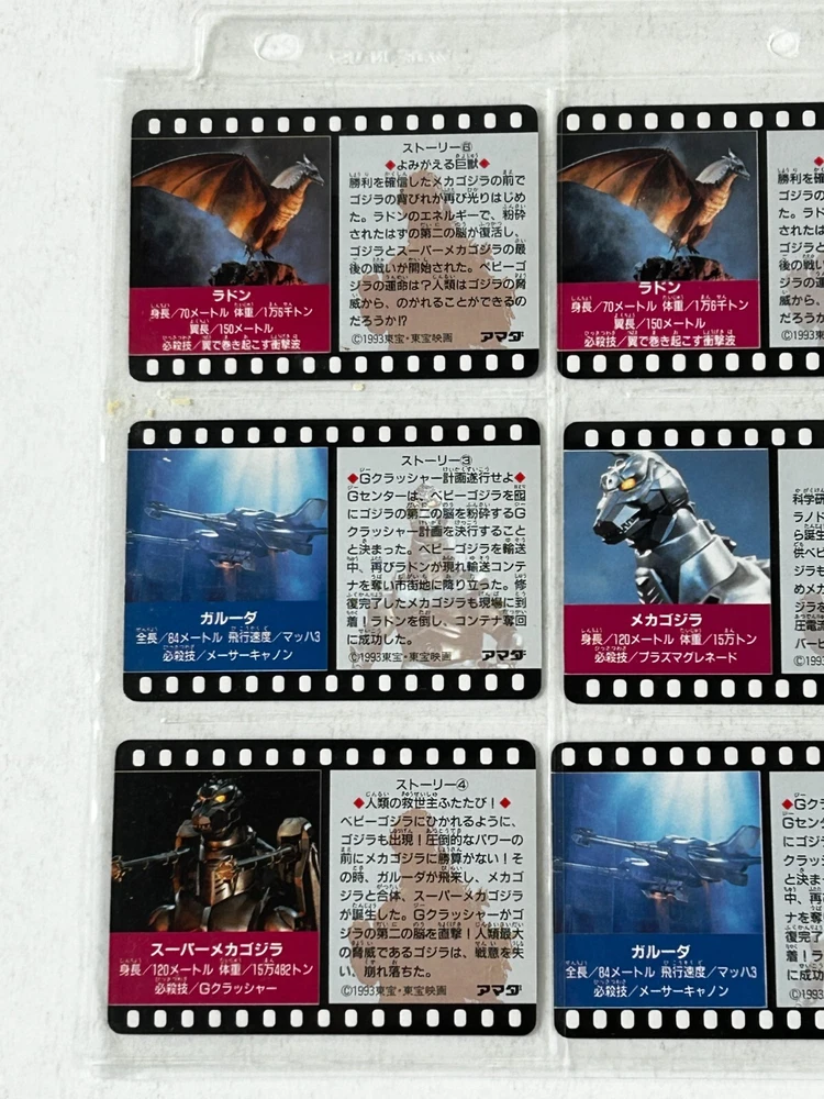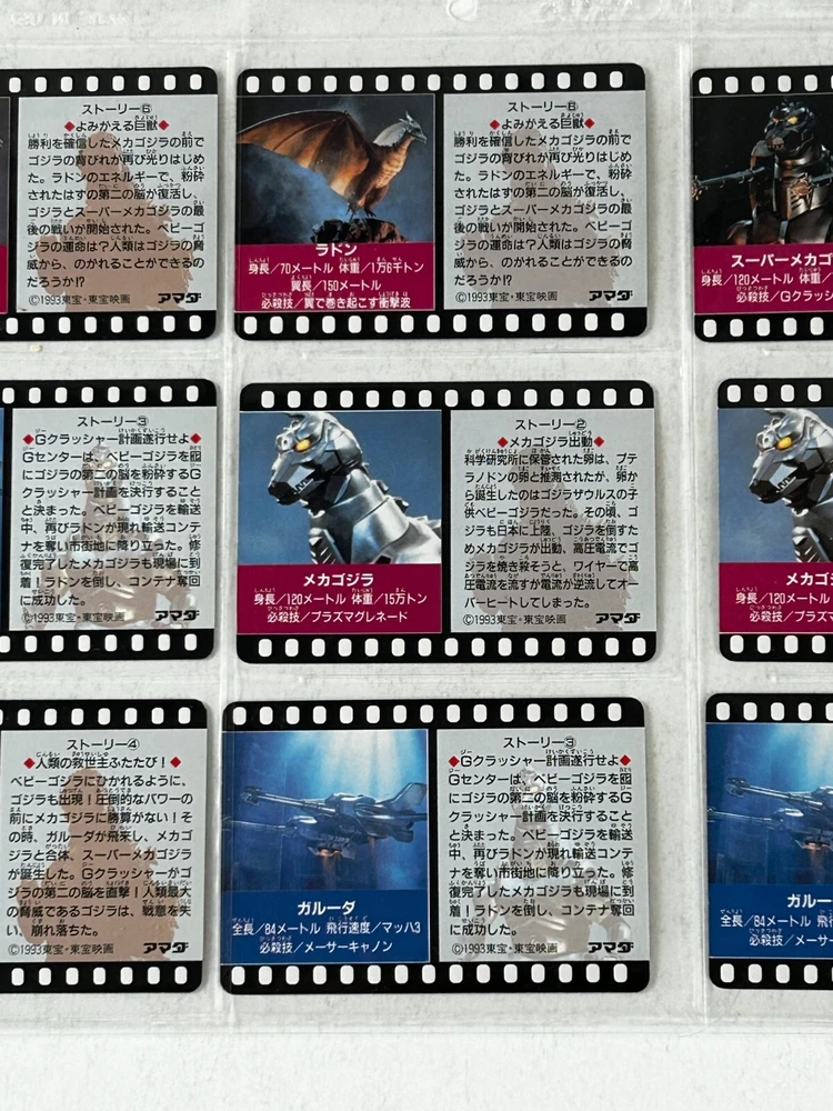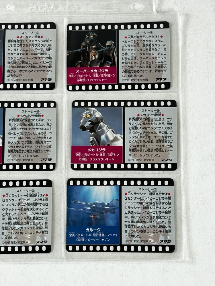 GODZILLA vs MECHAGODZILLA Amada PP Card Series 1993 9pc Lot Japan Japanese in fantastic condition from smoke free pet free home Check out the other vintage Godzilla items I have listed! Please mouse over and zoom in on all hi-res photos! This item will be packaged VERY well. Payment is due within 24-48 hours purchase. If this doesn't work for you, please message me before you buy for approval. Unless other arrangements have been made, transaction will be cancelled due to buyer non-payment at the end of the 4th day.