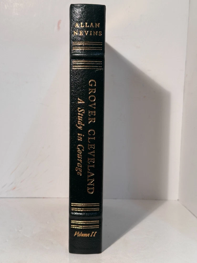 You are bidding on a very fine copy of a 1st Edition, 1st Printing of the Easton Press' THE LIBRARY OF THE PRESIDENTS series edition of Allan Nevins's 2 VOLUME SET of GROVER CLEVELAND - A STUDY IN COURAGE. This is a 2 Volume set edition about the life and work of President Grover Cleveland. Bound in beautiful genuine moroccan cowhide leather, the book features raised bars on the spine, gold tooling on the cover and spine, End-pages decorated with the seals of the U.S. Presidents, satin silk sewn-in bookmark, 22k gold dust on page ends on all 3 sides. Printed on archival quality acid-neutral paper, that will last for generations without diminishing in quality or looks. INCLUDES ORIGINAL, LIBRARY OF THE PRESIDENTS INSERT FOR BOTH VOLUMES. LIMITED, COLLECTOR'S EDITION FROM THE SERIES OF THE LIBRARY OF THE PRESIDENTS. Free Shipping in all of Continental United States. All other buyers, please check with me for shipping rates before bidding. ***NOTE: If you are dissatisfied with your purchase for any reason, please contact me first directly, and I will do all in my power to make sure you are satisfied with your purchase. *** See my other listings. I have a large collection of rare and collectible books, most leatherbound, others of first edition, first printing, even unpublished manuscripts. I will combine them during shipping so you can receive them together. Just message me your intent to buy more than one book, and I will hold them to be shipped together. Abell Happy Buying!