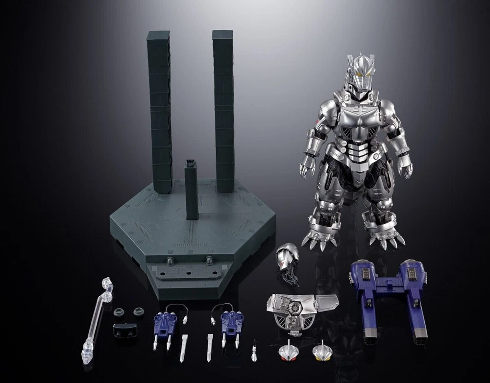 TM & (c) Toho co., Ltd. Height: approx 230mm. # Hrrom [Godzilla x Mechagodzilla], [Type 3 Machine Dragon] Revives with the soul of superalley! Modeling Based on a Huge Amount of Materials, Light-Emitting Gimmicks on the head and chest, abundant accessories that can be reproduced in the play, etc. Commercialized with the Highest Specifications Suitable for the 20th Anniversary! - The Highly Popular [Type 3 Machine Dragon] Appers in Chogokin Soul! Pursuing the proportions in the Play Based on the Supervision of Mechanical Designer Shinji Nishikawa and A Huge Amount of Materials. In addition, Built-in Light-Emitting Gimmicks on the Head and Chest. The Color of the Chest Chast To Reproduce The Firing of [Absolute Zero]. In addition to Armament Such As the Back Unit, A Pedestal and Damaged Parts with the image of a Hangar are included, Allawing you to Fully Reproduce The Activity in the Play. - The Most Popular [Godzilla Series] [Type 3 Machine Dragon] is now available as a superalley soul! The Characteristic Silver Armor of the Whole Body is Painted to Give It a Solid Finish. - Pursue the proportions in the Play Based on the supervision of Mechanical Designer Shinji Nishikawa and A Huge Amount of Materials. Thoroughly Reproduced Down to the Finest Details. -Built-in Lighting Gimmick on the Head. By Exchanging Parts, it is possible to reproduce The Runaway State and After Repair. - Equipped with Absolute Zero, The 3rd Machine Dragon's Greatest Weapon, Can Be Deployed. -[Absolute Zero] Also Has a Built-in Light-Emitting Gimmick, Reproducing The Firing Sequence with Color Changes. - Back Unit and Type 0 Railgun Are Included. Can be changed to [Heavy Armed Type] by equipping it. - The back unit can reproduce the injection state with a dedicated joint. -The Maser Blade Developed from the 0-Type Railgun is detachable, Pursuing a Large-Scale Modeling As in the Play. - The Boosters Built Into the Legs Can be deployment with Without replacement. - Comes with damaged parts that can be reproduced after the decisive battle. In addition, a mini figure of akane ieshiro, the pilot, is also included and can be attached to the type 3 kiryu. - Dedicated Pedestal is shaped like a Hangar. In addition to directing the starting seques, it is possible to suspend the armage as an original gimmick. [set content] ・ Body ・ Two Replacement Eye Parts ・ Back Unit ・ Type 0 Railgun Left and Right ・ Replacement Maser Blade x 2 ・ Replacement Damage Reproduction Parts (Chest, Right Arm) ・ Akane Ieshiro Minifigure ・ Dedicated Pedestal Set ・ Post for back unit ・ Various Suspension Joints ・ LR41 x 5 (with test battery) # Hrrom [Godzilla x Mechagodzilla], [Type 3 Machine Dragon] Revives with the soul of superalley! Modeling Based on a Huge Amount of Materials, Light-Emitting Gimmicks on the head and chest, abundant accessories that can be reproduced in the play, etc. Commercialized with the Highest Specifications Suitable for the 20th Anniversary! - The Highly Popular [Type 3 Machine Dragon] Appers in Chogokin Soul! Pursuing the proportions in the Play Based on the Supervision of Mechanical Designer Shinji Nishikawa and A Huge Amount of Materials. In addition, Built-in Light-Emitting Gimmicks on the Head and Chest. The Color of the Chest Chast To Reproduce The Firing of [Absolute Zero]. In addition to Armament Such As the Back Unit, A Pedestal and Damaged Parts with the image of a Hangar are included, All