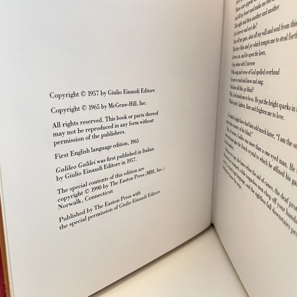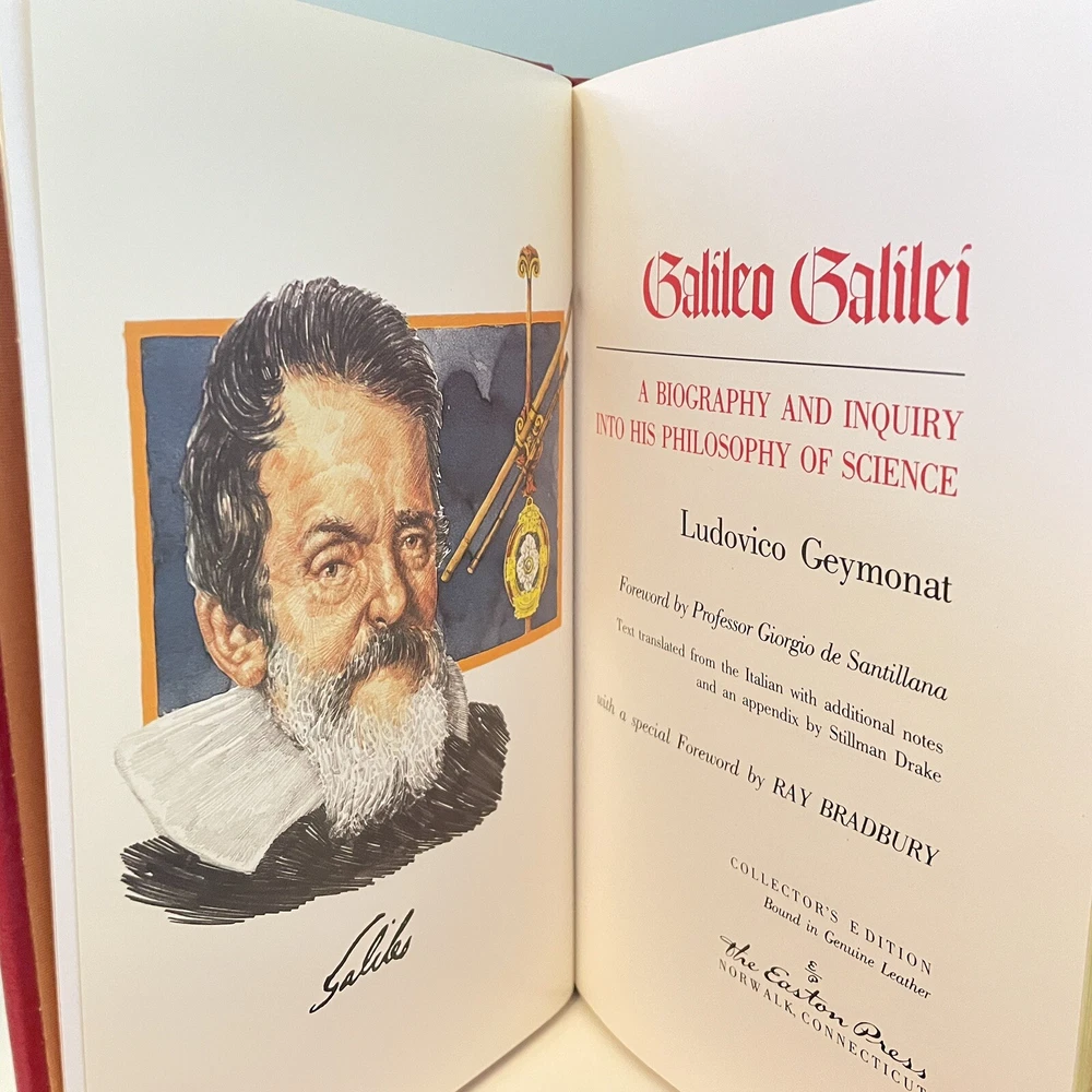 Bookseller Inventory #: 29122007 Description: Galileo Galilei by Ludovico Geymonat (Easton Press, CT, 1990). This is a genuine leather-bound hardcover edition. Not published with a dust jacket. Includes the paper insert about the author of the introduction, Ray Bradbury. Attached ribbon bookmark. Condition: The book is in Like New condition. It appears to have never been read.