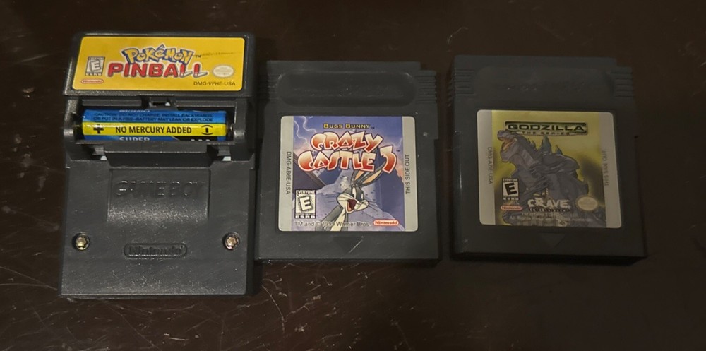 GameBoy Color Game Cartridges Bundle - 3 Games - Pokémon Pinball / Bugs Bunny Crazy Castle 3 / Godzilla The Series **Willing to sell Separately** *TESTED*