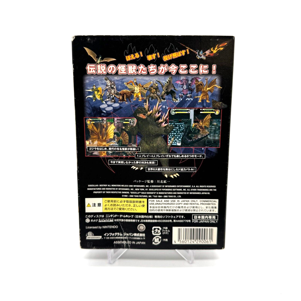 Experience the ultimate battle with Godzilla: Destroy All Monsters Melee for Nintendo GameCube. This Japanese game released in 2002 features the iconic Godzilla in a battle-filled adventure. The game includes a manual and is rated E-Everyone, making it perfect for gamers of all ages. This NTSC-J (Japan) version is compatible with Nintendo GameCube and is published by Nintendo. The game's genre is a battle and is set in Japan. Get ready to destroy all monsters and save the world with this exciting game.
