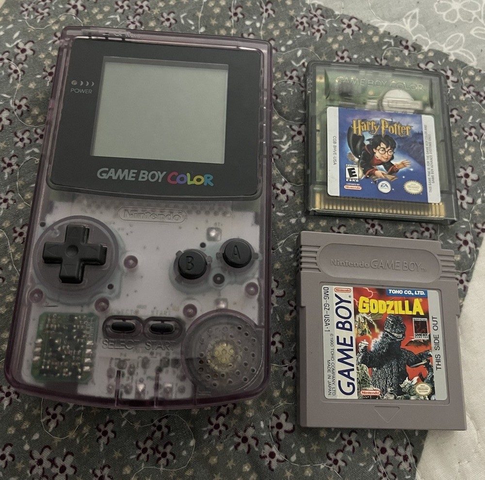 Dive into the nostalgic world of gaming with the classic Nintendo GameBoy Color, presented in a vibrant Atomic Purple. This iconic handheld console comes equipped with not just one, but two engaging games, Harry Potter & Godzilla ensuring hours of entertainment on the go. This item is OEM Has not been Modified and Everything is in great working condition as you can see in the pictures. Please ask any questions before Purchasing… SOLD AS IS…