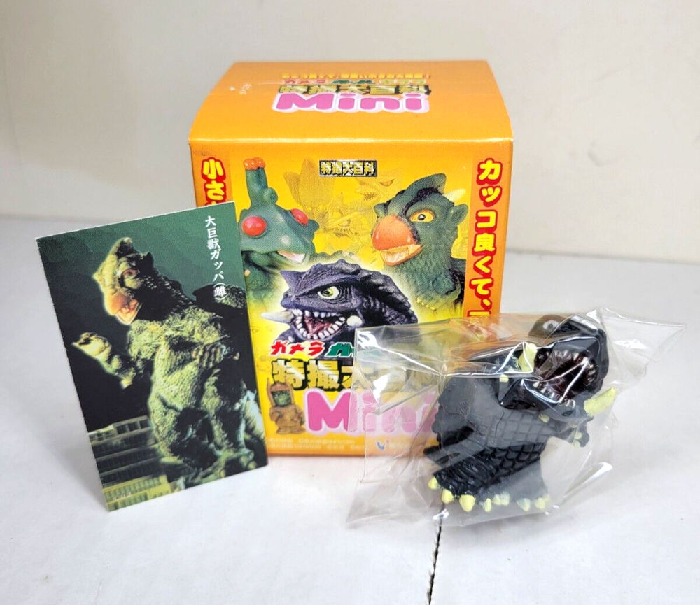 This is a RARE Gamera figure from a Series that appears to be called the "Gamera Gappa Guilala Tokusatsu Mini" Series. Also comes with a small Gappa Card. See pictures for details. CONDITION: The box has been opened, but the small Gamera figure still seems to be in the package, so it could technically still be considered new. Perhaps some small signs of wear/use, but overall, great! See pictures for condition details. Don't miss out! P.S. Be sure to check out my other Toku figures too!