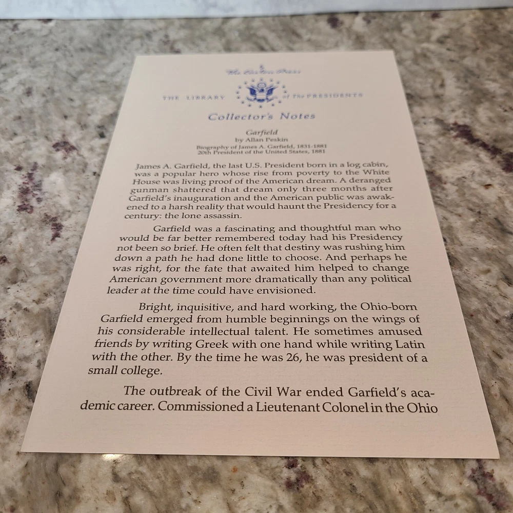 Easton Press Library Presidents Leather Bound Edition Garfield. It measures 6 x 9, great condition, no rips tears, bends on the pages, like new....