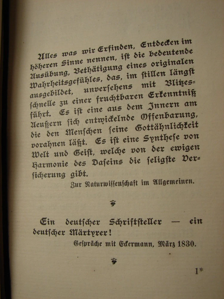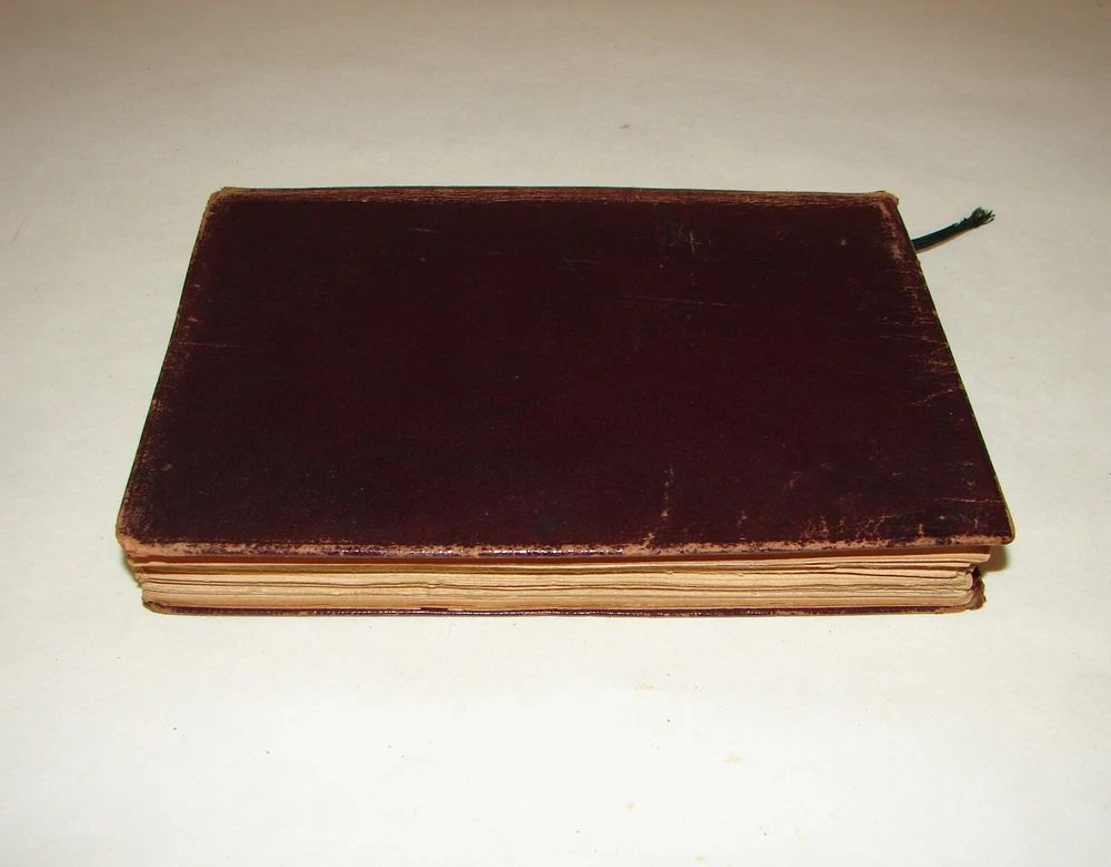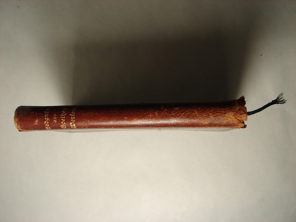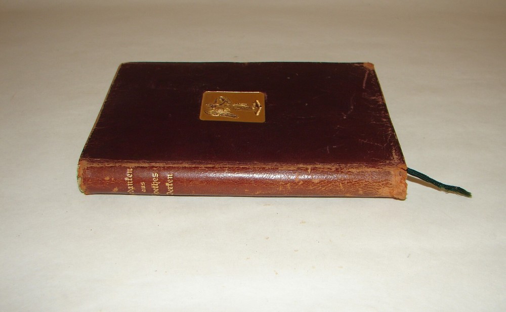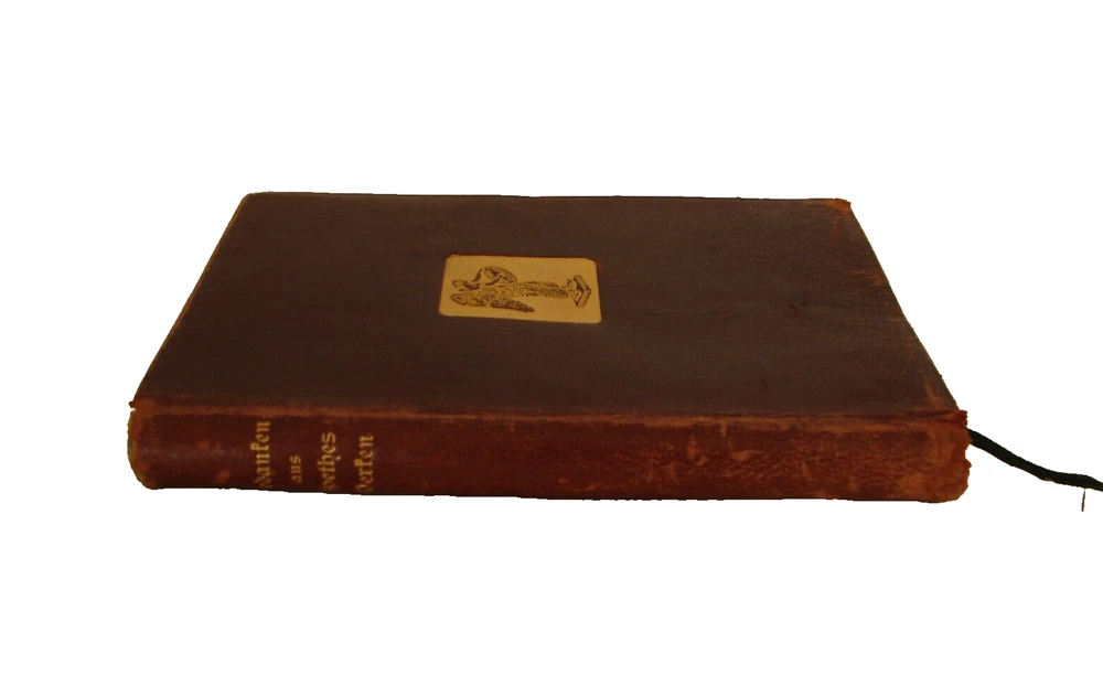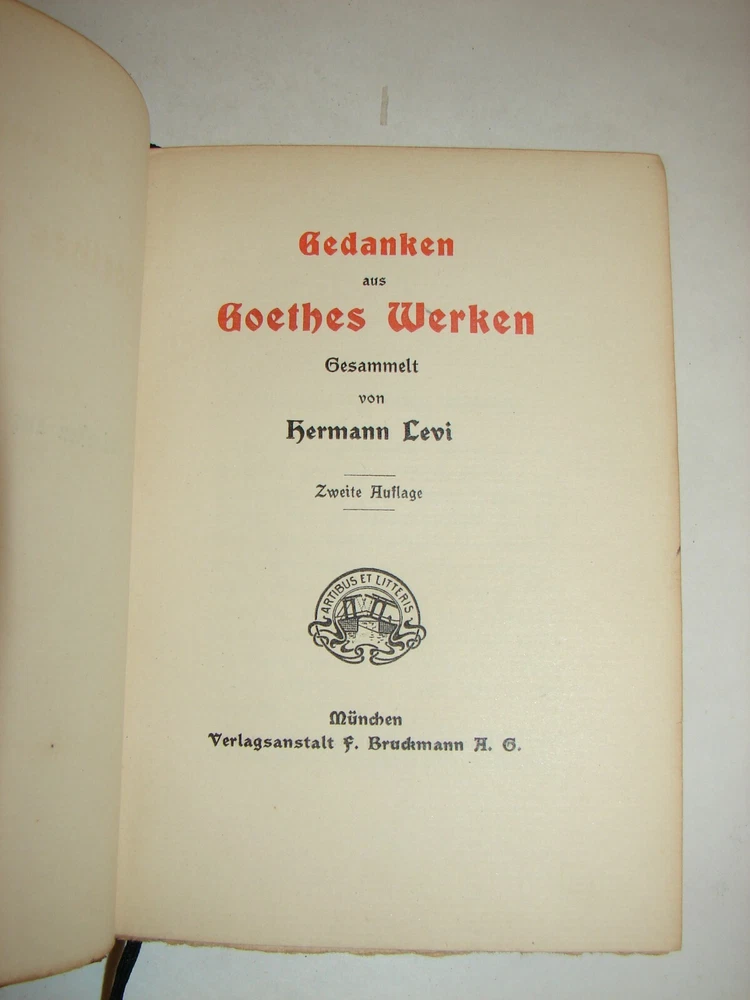 Antique book "Gedanken aus Goethes Werken. Gesammelt von Hermann Levi." (Thoughts from Goethe's works. Collected by Hermann Levi). Hermann Levi (1839-1900) was one of the most important conductors of the 19th century. Book has flexible original leather binding with gilded spine title, edges slightly rubbed, shows wear, as is - refer to pictures, Published by Arts and Letter/ Munich Verlagsanstalt f. Bruckmann H. G., 5 7/8 in x 4 1/4 in x 1/2 in, 144 pages.