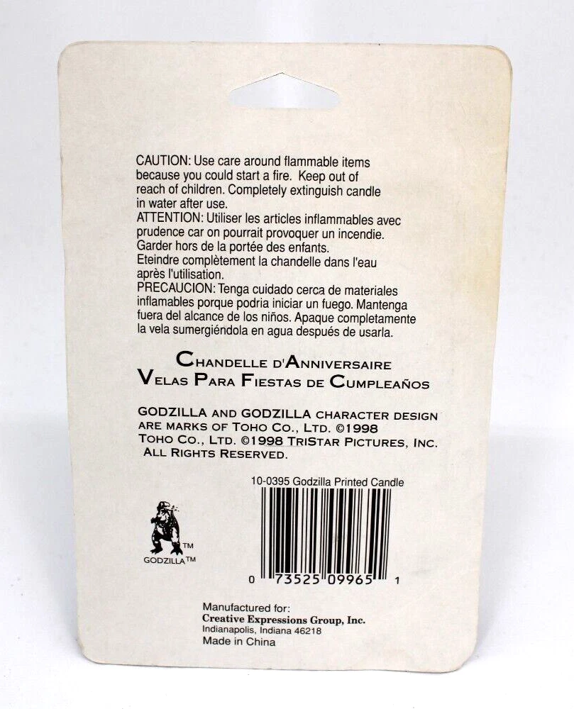This listing is for a Genuine Godzilla 1998 One Candle Paper Arts New on Card Item is brand new and sealed on card. See photos for further details on condition. Item shown is exactly what you will receive. Comes as you see it here. See photo(s). 3Ee ------------------------------------------------------------------------------ Shipping within the US will be calculated based on buyer's location. International bidders are welcome, the shipping that Ebay estimates for you will be the correct amount due. We have no control over GSP sent invoices . International buyers take responsibility for any customs/duty fees . We only declare the actual value of the items to customs. We do combined shipping based on weight and final value - please message us with any questions. Items described are actual items pictured and are guaranteed to be as such. Any questions, please ask. We accept returns on all items. Please contact us before using the eBay Hassle-Free Return system to discuss your concerns, as sometimes we can come to an agreement without you needing to complete a return. 10/24 AM 10/13/2024