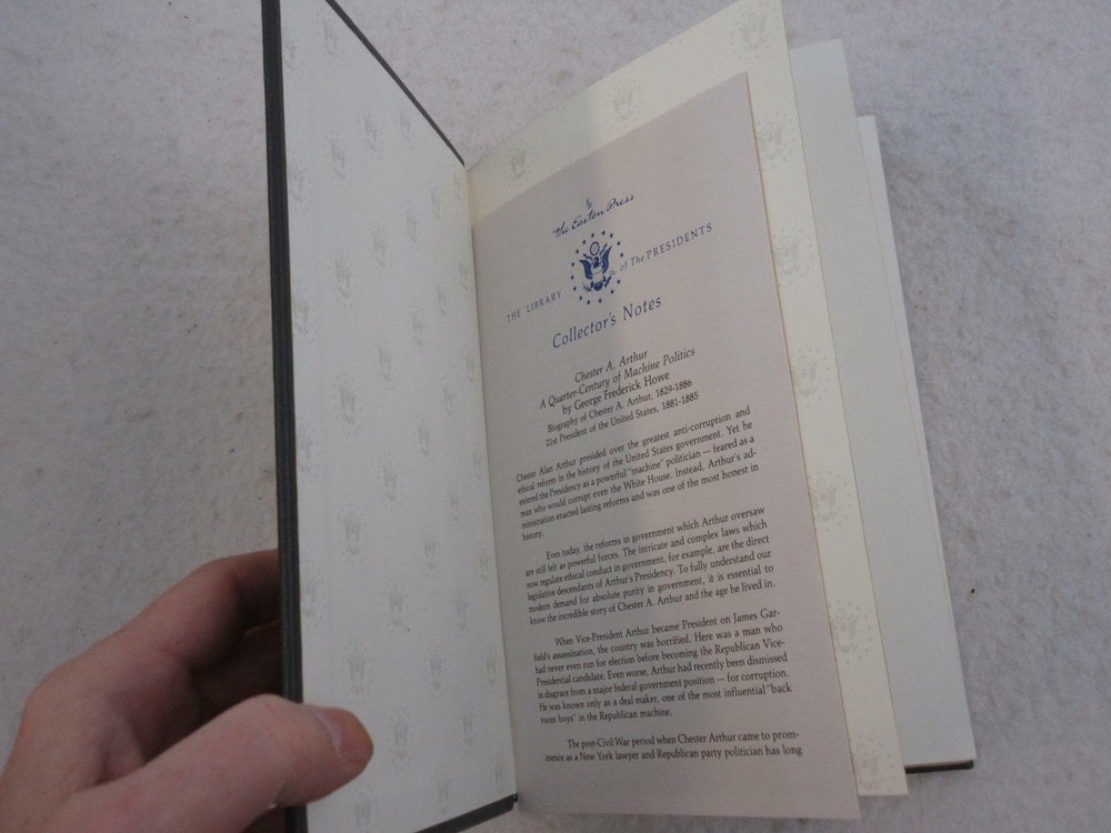 George F. Howe CHESTER A. ARTHUR 1987 Easton Press Leather Library of Presidents In near fine condition. Includes Notes. Please examine photos for details. Condition: We strive to describe and photograph the condition of every item as accurately as possible. Photos are of the actual item that is being sold. Please examine the photos carefully for any condition details and possible flaws. Best Offers: Items are available for offers only after being listed for 30 days. We consider all offers in relation to current market values. We try to respond almost immediately to most offers. Most of our counteroffers are firm but we are open to bargaining. Shipping for US Customers: We combine shipping. When ordering multiple items from us please request a total before paying. We charge postage based on weight plus $1 for each eBay listing. All of our orders are packed carefully to prevent damage during shipment. We ship most of our items within 24 hours. Shipping for International Customers: All international orders are shipped via Ebay's Global Shipping Program. IF AN INTERNATIONAL CUSTOMER IS INTERESTED IN ORDERING MORE THAN ONE ITEM please do not Buy It Now or use the Make An Offer option on the listing. Rather message us first with a list of the items desired along with any offers. After we agree on prices we will combine all the orders into a single listing at the agreed upon total price. This will save you significantly on the cost of shipping. Contact Us: We are available 7 days a week and are happy to answer any questions you may have. The complete eBay Selling Solution.