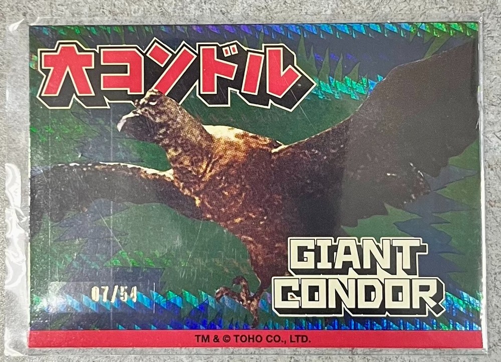 Capture the essence of classic sci-fi horror with the Giant Condor 2024 #C12 trading card from the acclaimed Godzilla Super 7 series. This collectible showcases the iconic monster in all its glory, as depicted in the revered 1966 film. With its rich detailing and vibrant colors, this card is a must-have for fans of the TOHO Showa Series. Each card comes from a meticulously crafted series, with this particular piece representing the first installment. Whether you're a seasoned collector or new to the realm of Godzilla memorabilia, this card promises to be a standout addition to any collection, celebrating the legacy of one of the most beloved franchises in cinematic history.