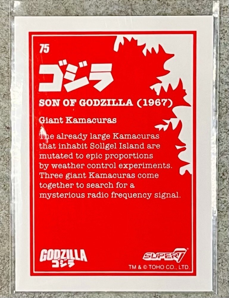 This Giant Kamacuras card is a must-have for any Godzilla fan! The vibrant colors and detailed artwork perfectly capture the monster’s classic Showa-era design. It’s a fantastic addition to any collection, bringing nostalgia and excitement. The quality is top-notch, just what you’d expect from Toho. A true gem for collectors!