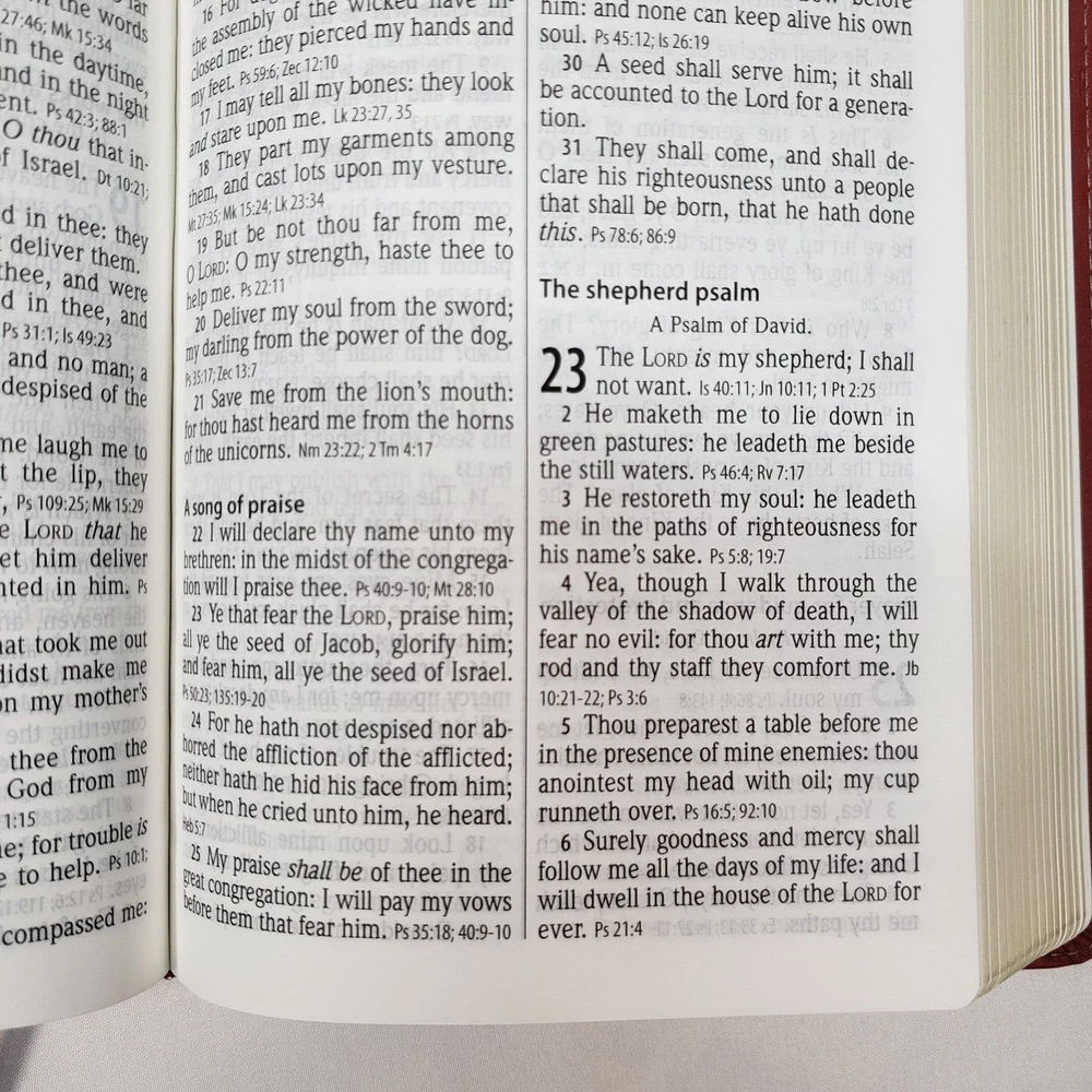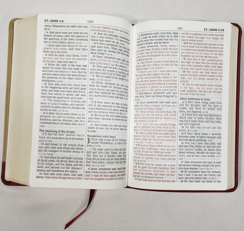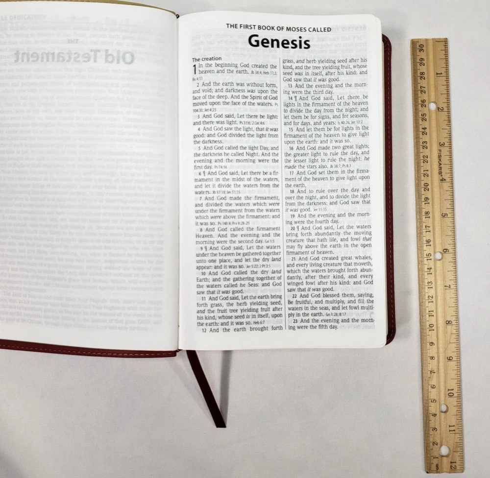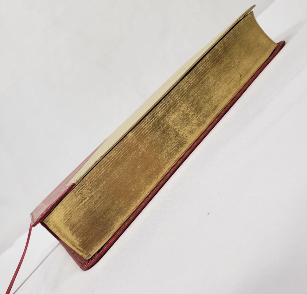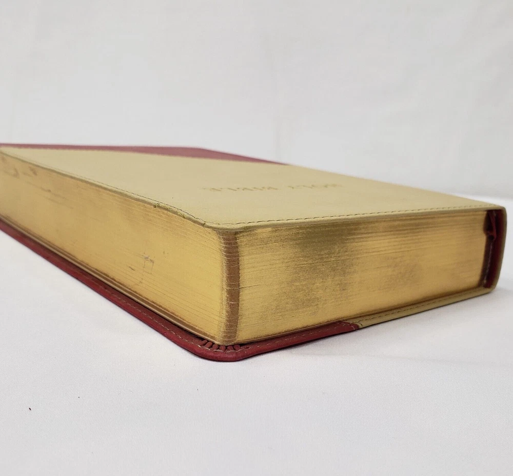 Personal Size Giant Print Reference Bible King James Version Study helps including words of Christ in red, concordance, parables, maps, and more Brick Red on Sand Flexisoft Imitation Leather Cover From Hendrickson Bibles Used with light wear. Cover and page edges have some light wear including marks, spots, and wear around edges and corners. Some pages have marks/creases.