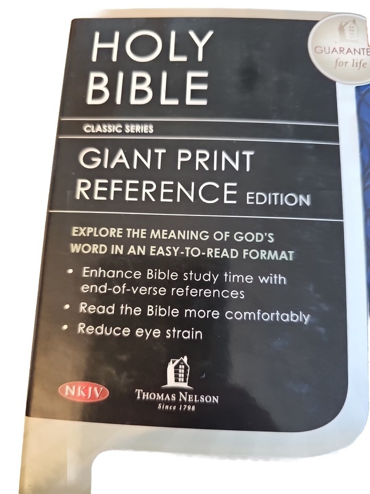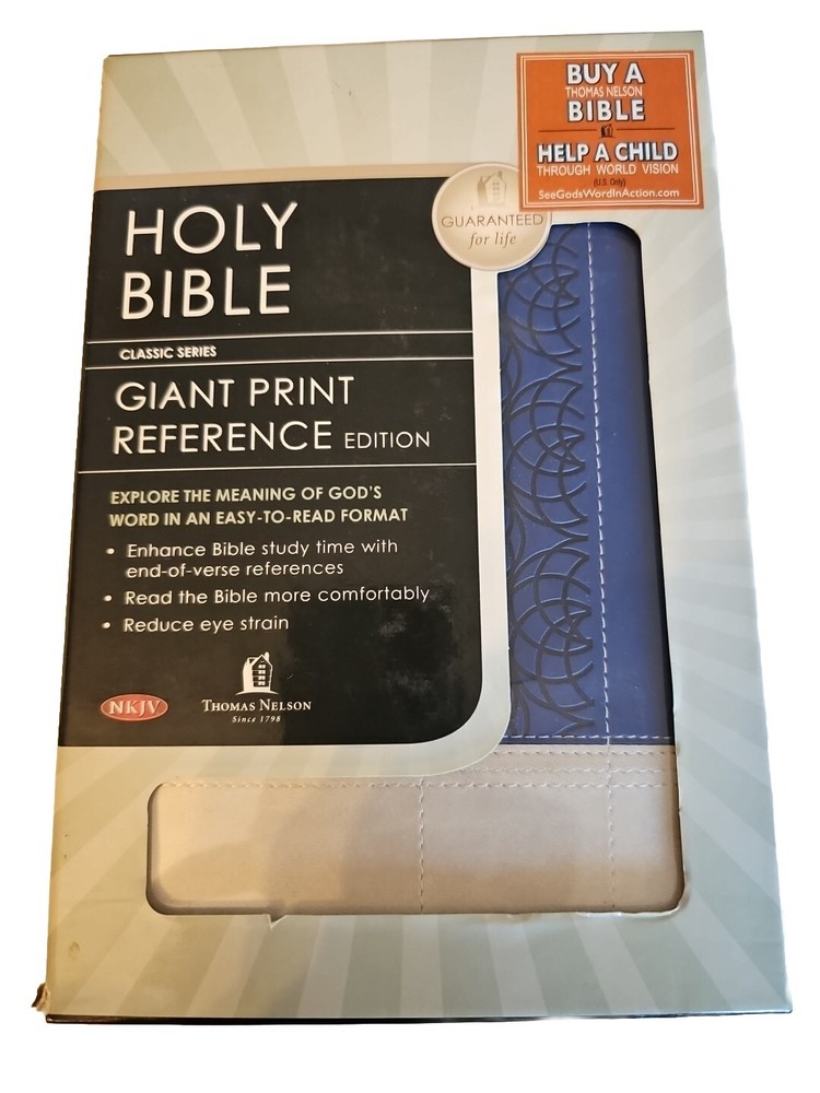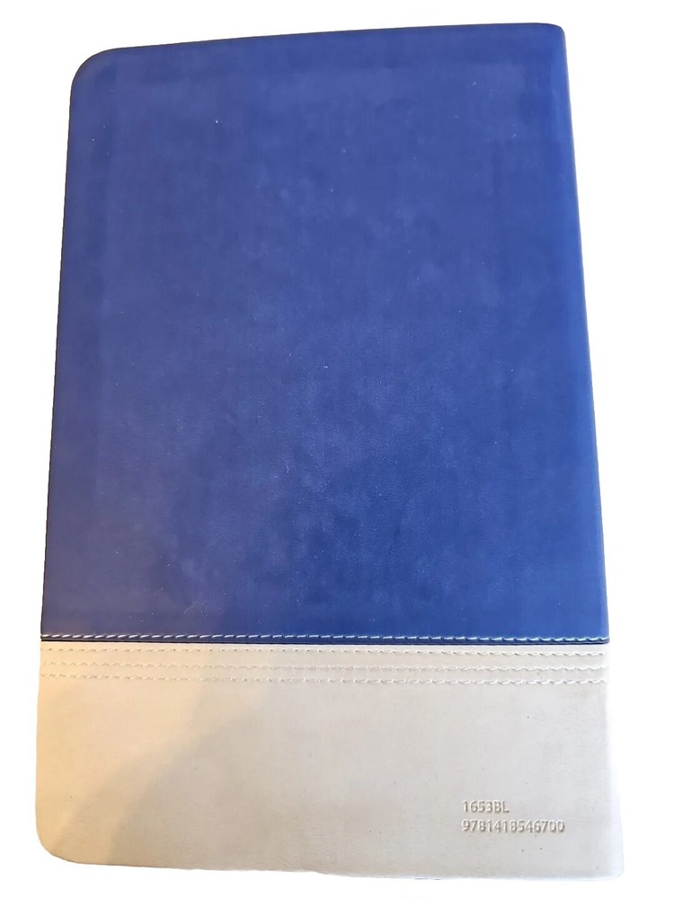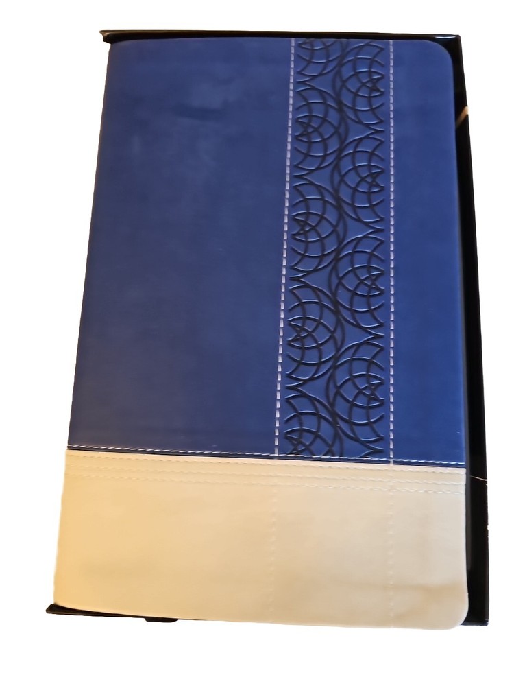 Giant Print Reference Bible NKJV Sapphire Blue Cream Leathersoft LNIB Inscribed Please see photos as they are part of the description....