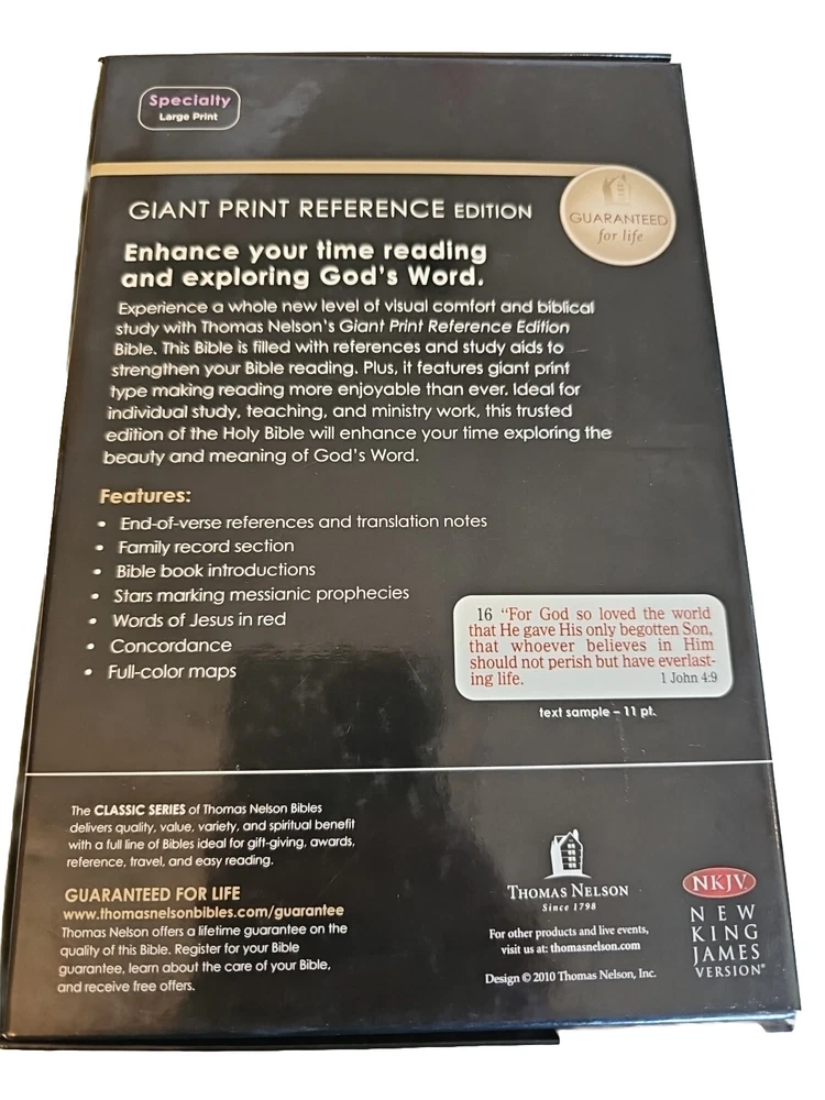 | Features | Large Print, Faux Leather Bound |